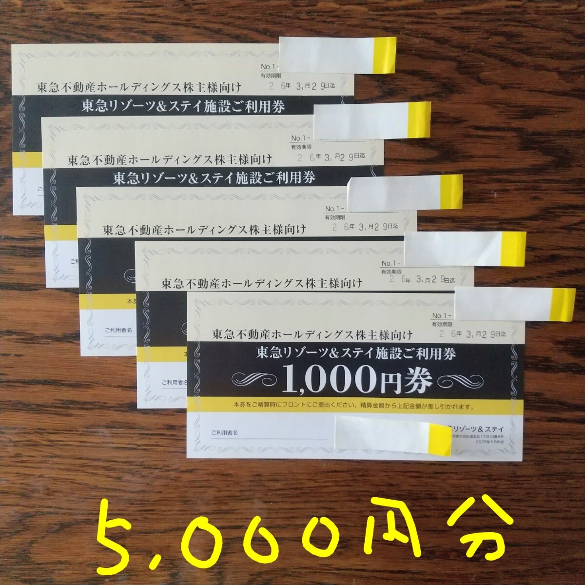 東急リゾーツ&ステイ施設ご利用券 5,000円分(1,000円x5枚)です。