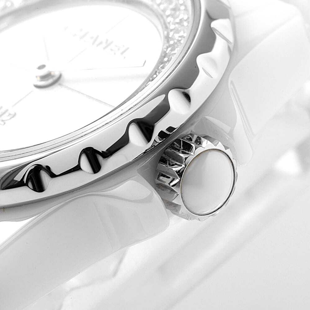 モデル情報 | 2000年に華々しいデビューを飾り時計界に革命を与えたと言われるJ12シリーズ。セラミックをケースとブレスレットに採用するという斬新な作りが魅力的で、瞬く間に多くのファンの心をとらえ世界中で爆発的ヒットを収めました。2017年に発表されたこちらのモデルは、直径19mmの小ぶりなハイテク・セラミックケースが可愛らしいJ12 XSです。フランジにぐるりと32個のダイヤモンドをセッティング。時計としての機能だけでなく、アクセサリーとしても楽しめるタイムピースです。防水性30メートル。 |
