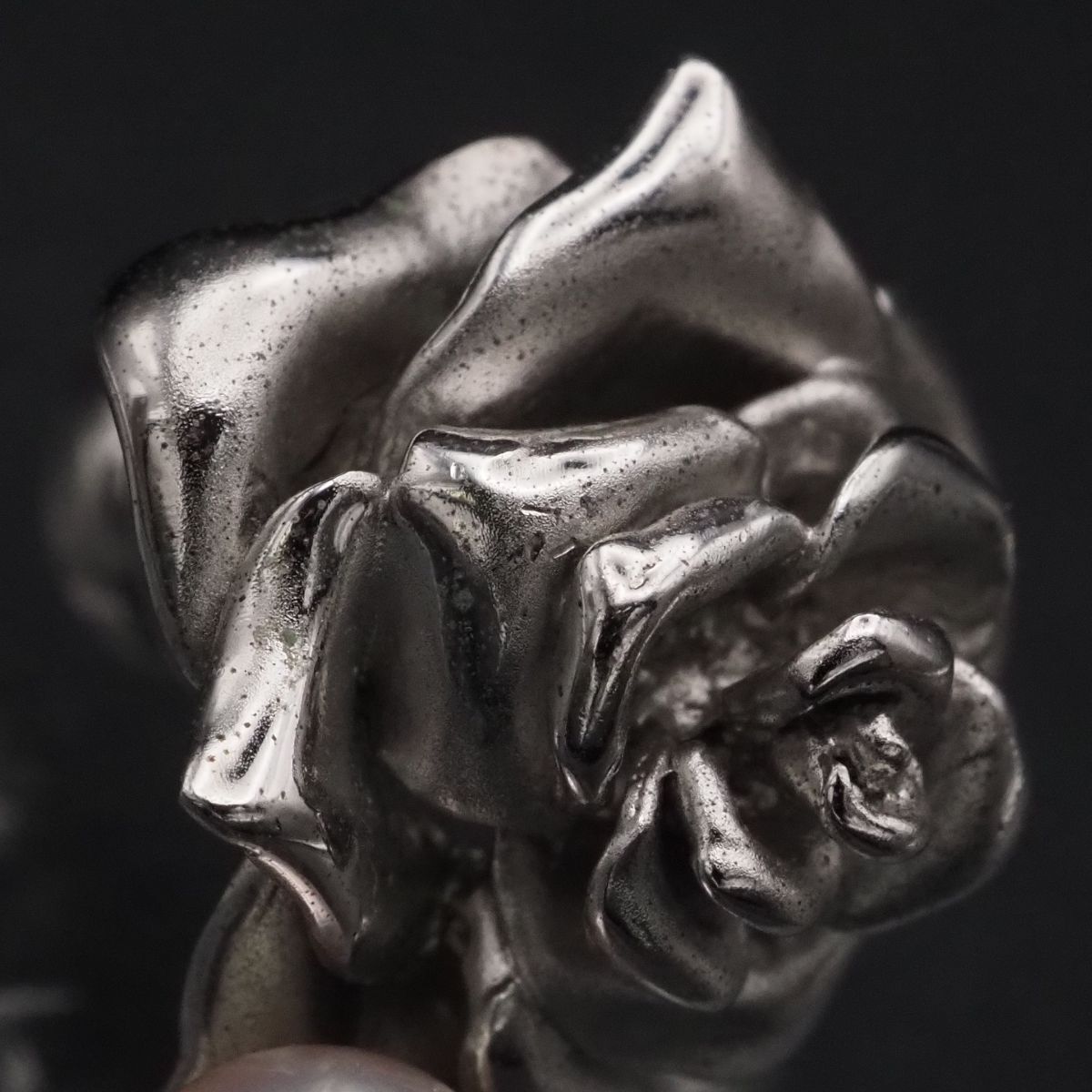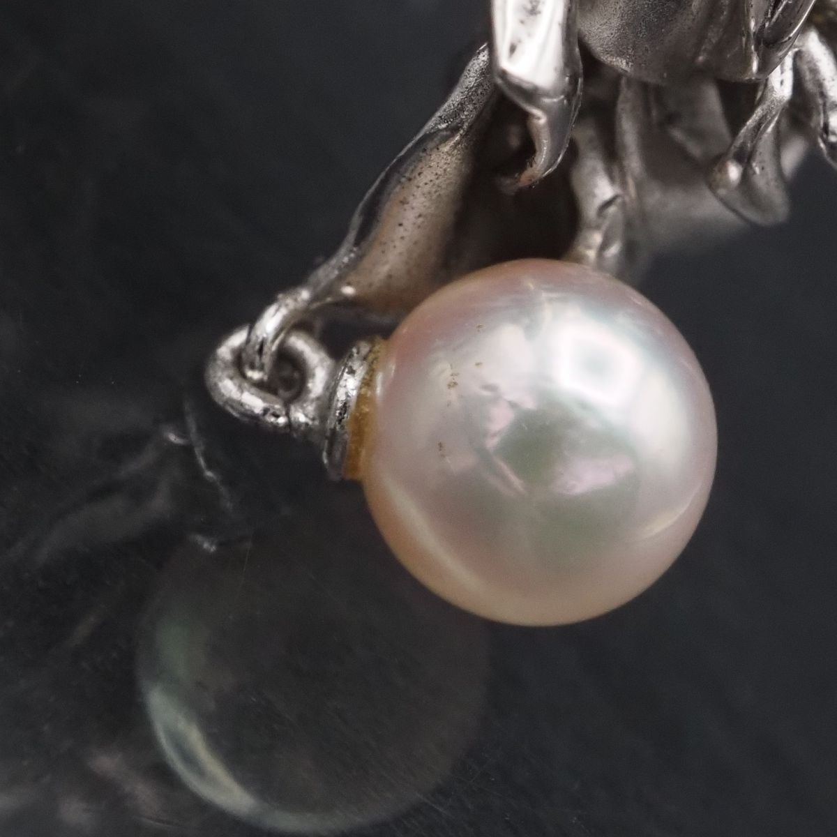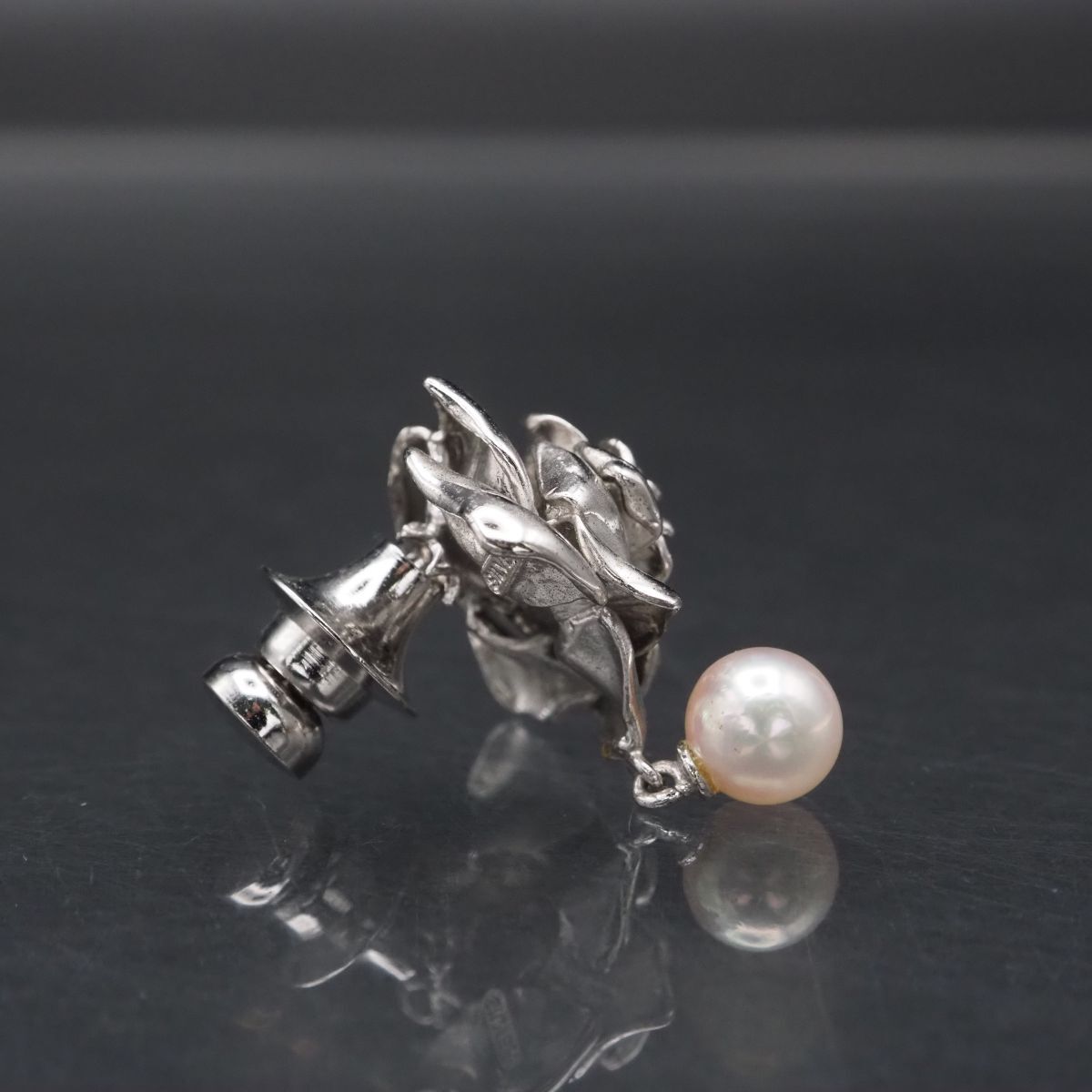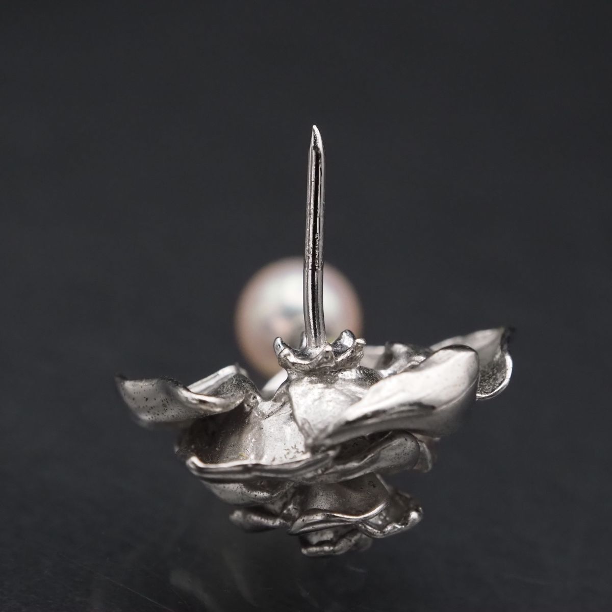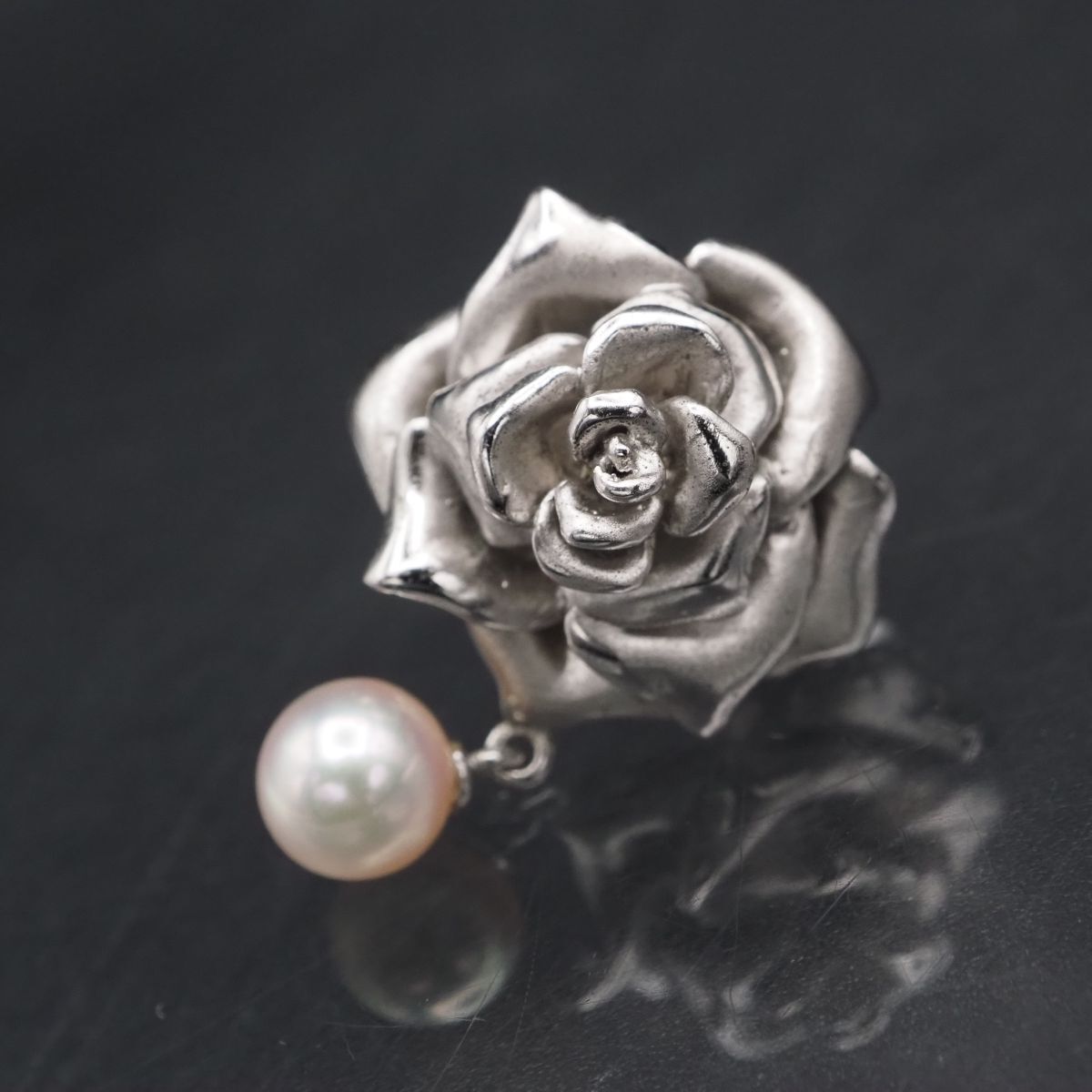 F926 本真珠 6.5mm珠 パール SILVER刻印 ピンブローチ 薔薇 バラ ローズ デザイン シルバー ラペルピン 6月誕生石