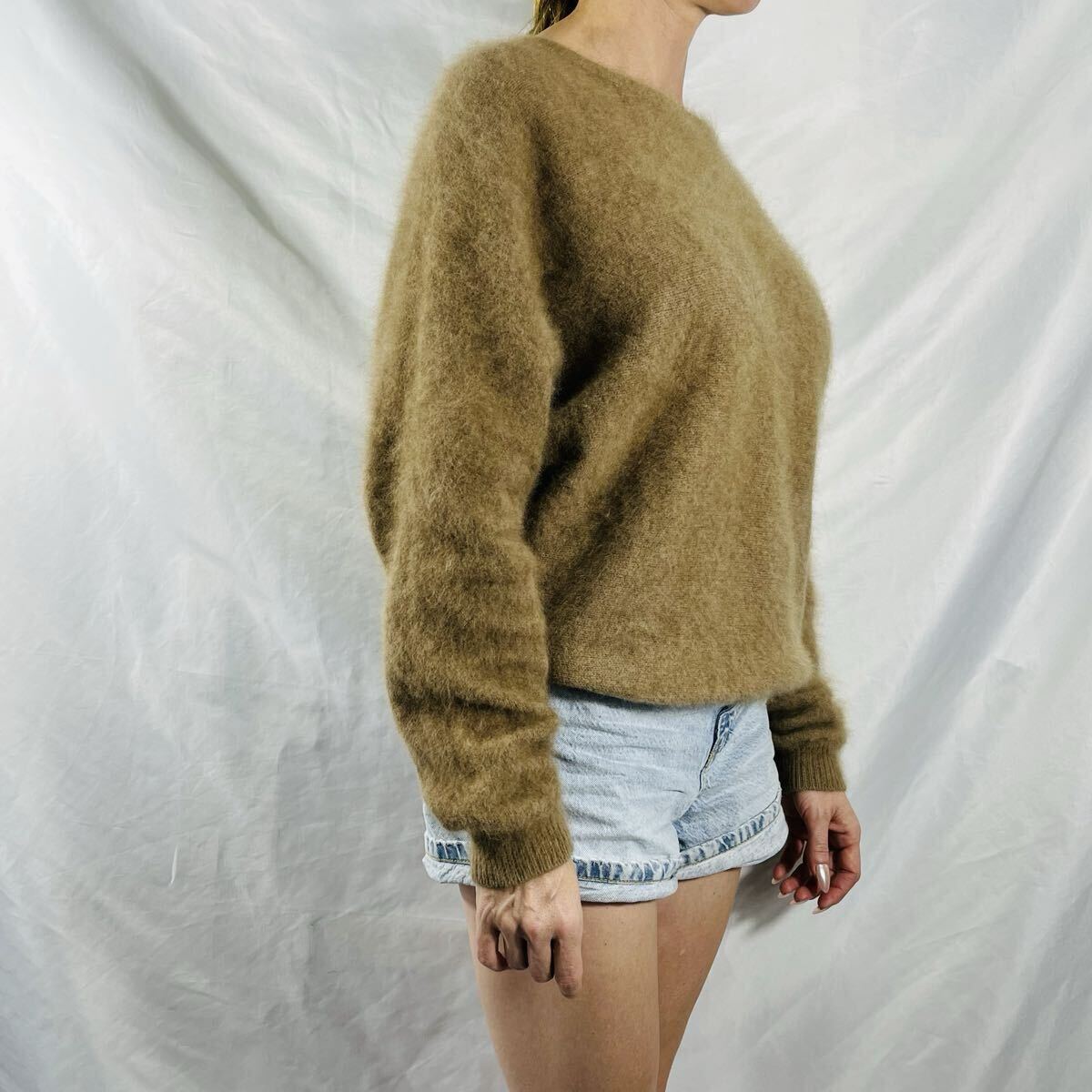 ・柔らかいたぬきの毛混紡のブラウンニット、オーバーサイズで快適な着心地。
