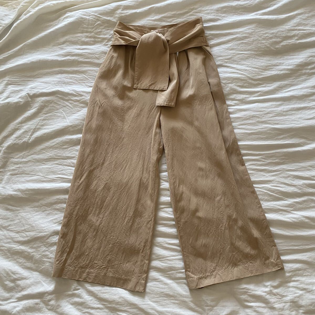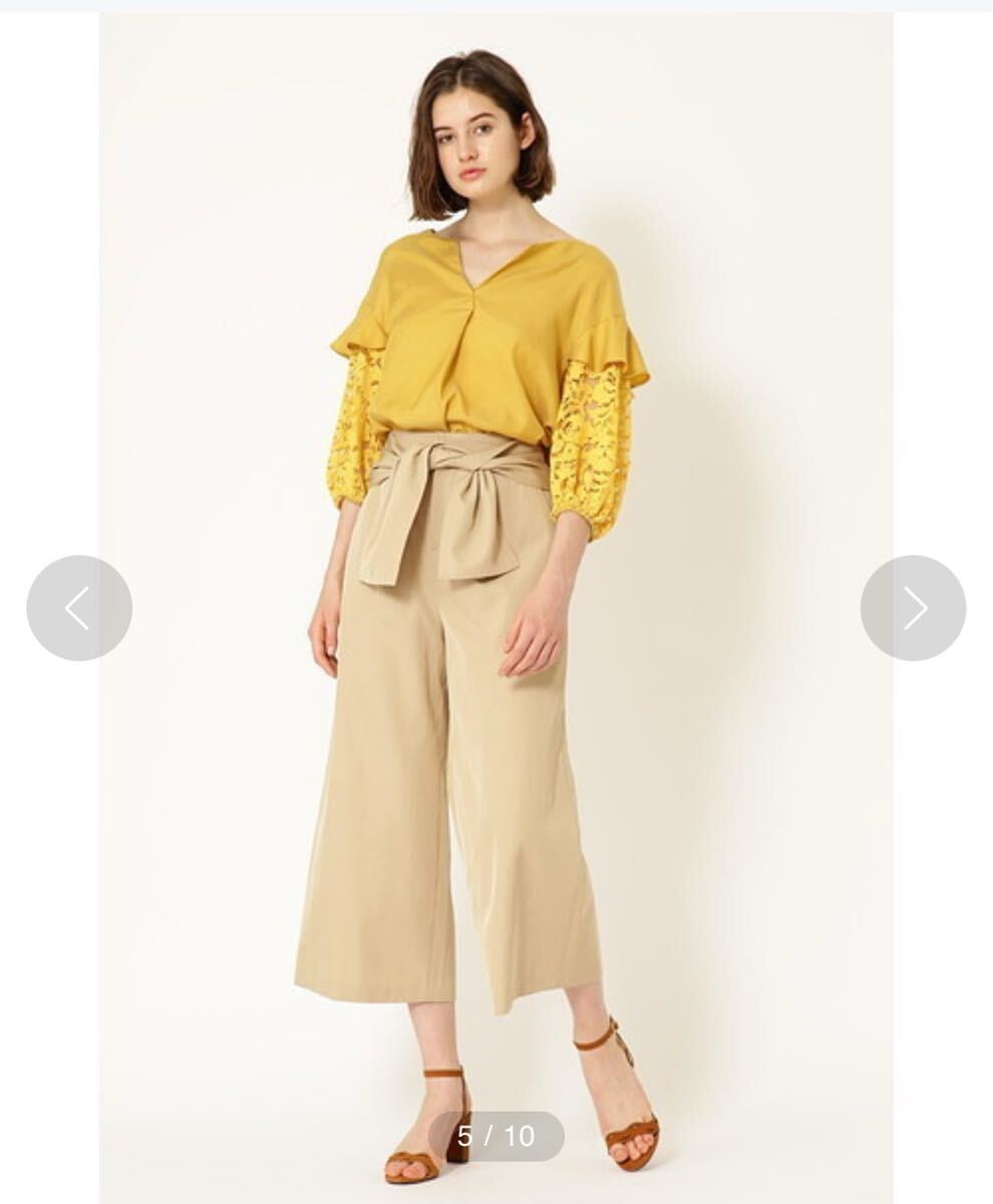 ウエストディティールが特徴的なワイドパンツ。カジュアルになり過ぎず、微光沢が程よくキレイなビスコース混を使用しています。ウエストのリボンを太めに作っているので、リボンでありながら可愛くなり過ぎずこなれ感のある1本。お尻まわりは大きく見えないよう太過ぎず、穿きやすいワイドシルエットに仕立てました。薄手のニットインしたスタイリングがオススメです。・ファスナー有り。