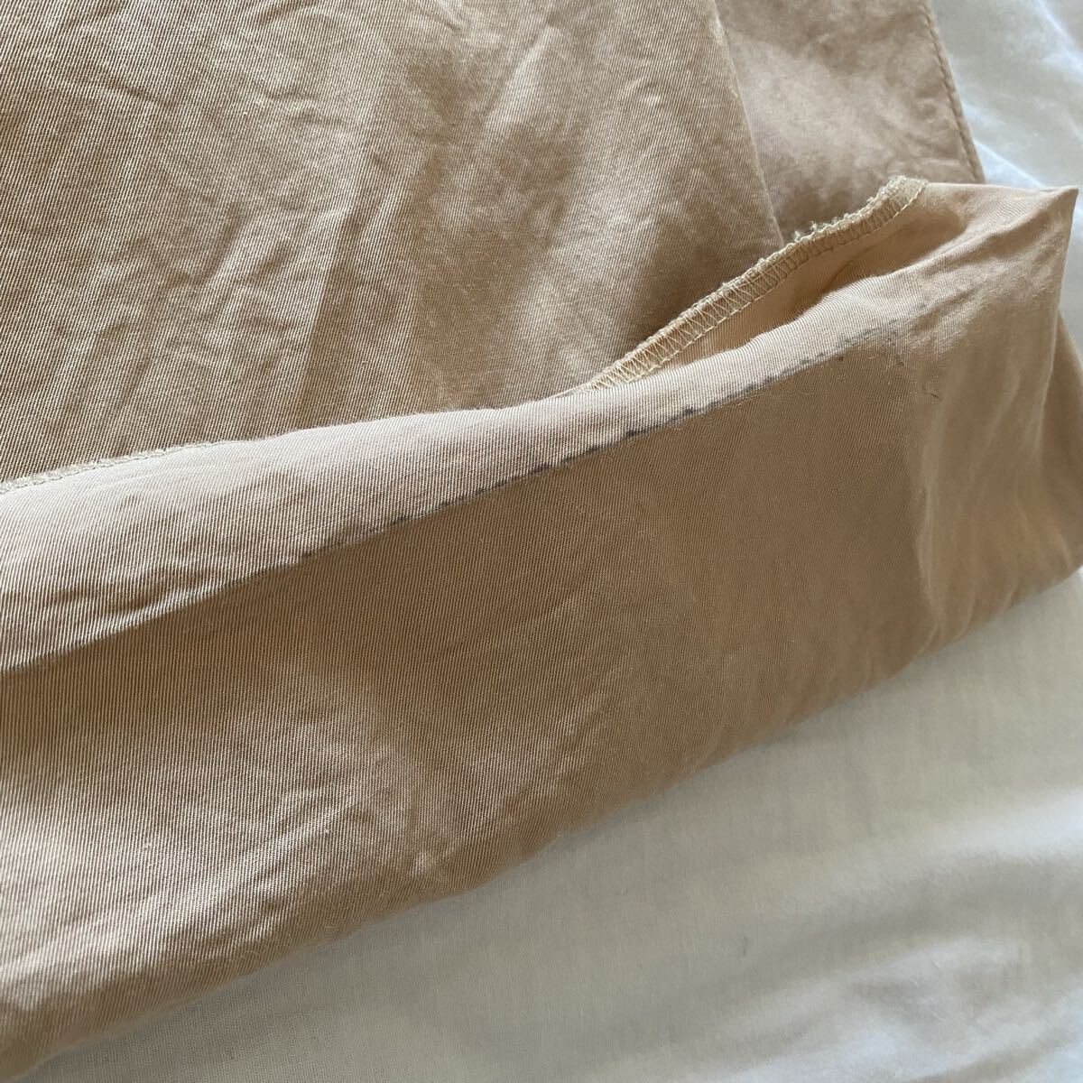 裾片方片側の折り返し部分の糸がとれています。折り返し部分に汚れもございます。
