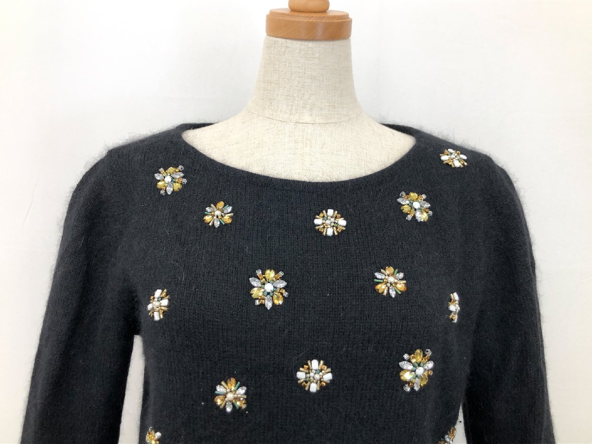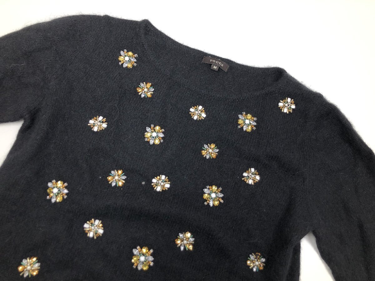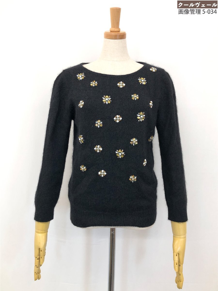 超美品【トッカ TOCCA】 アンゴラ混 起毛 ビジュー装飾 花柄 ニット セーター (レディース) sizeM ダークグレー系 ◇33LN6051◇