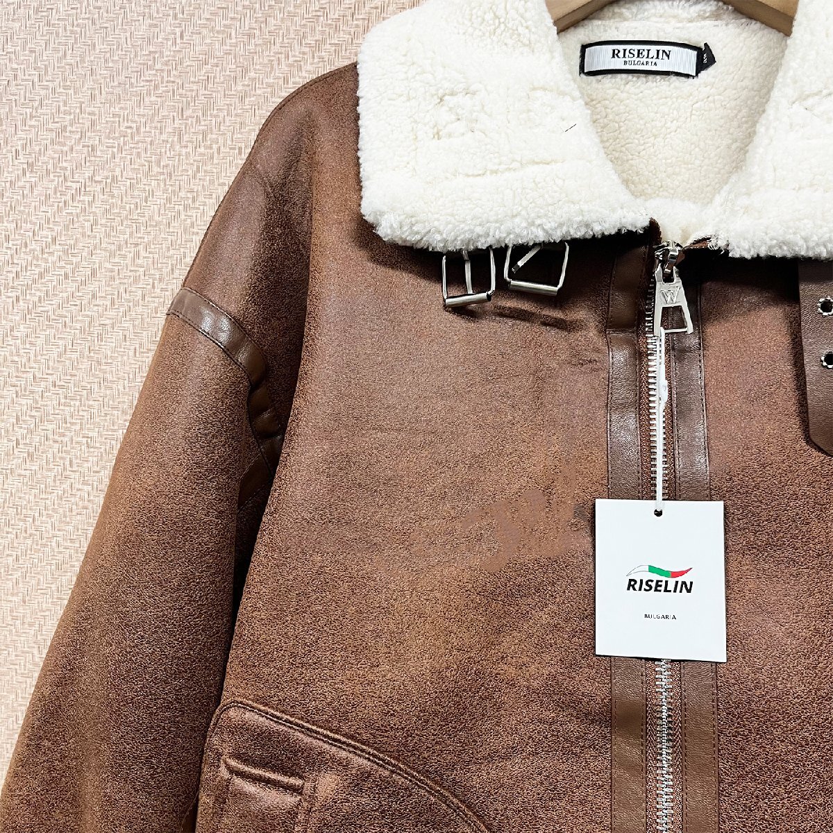 絶賛ヨーロッパ製※定価13万◆ブルガリア発※RISELIN レザージャケット 羊革100% 厚手 保温 裏起毛 ムートン ライダース 革ジャン 冬 XL/50