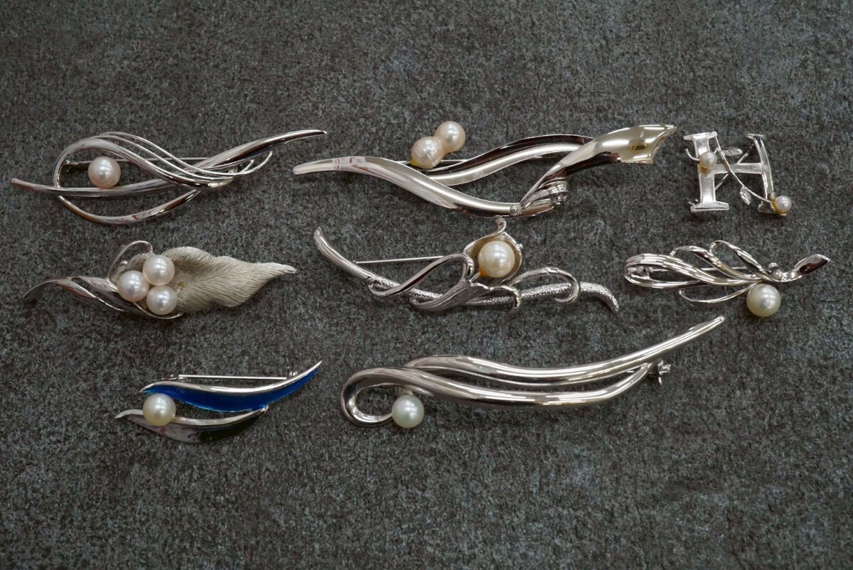B350 全てSILVER アコヤ真珠 本真珠 パール ブローチ 8点セット シルバー アクセサリー ヴィンテージ 大量 まとめて おまとめ まとめ売り