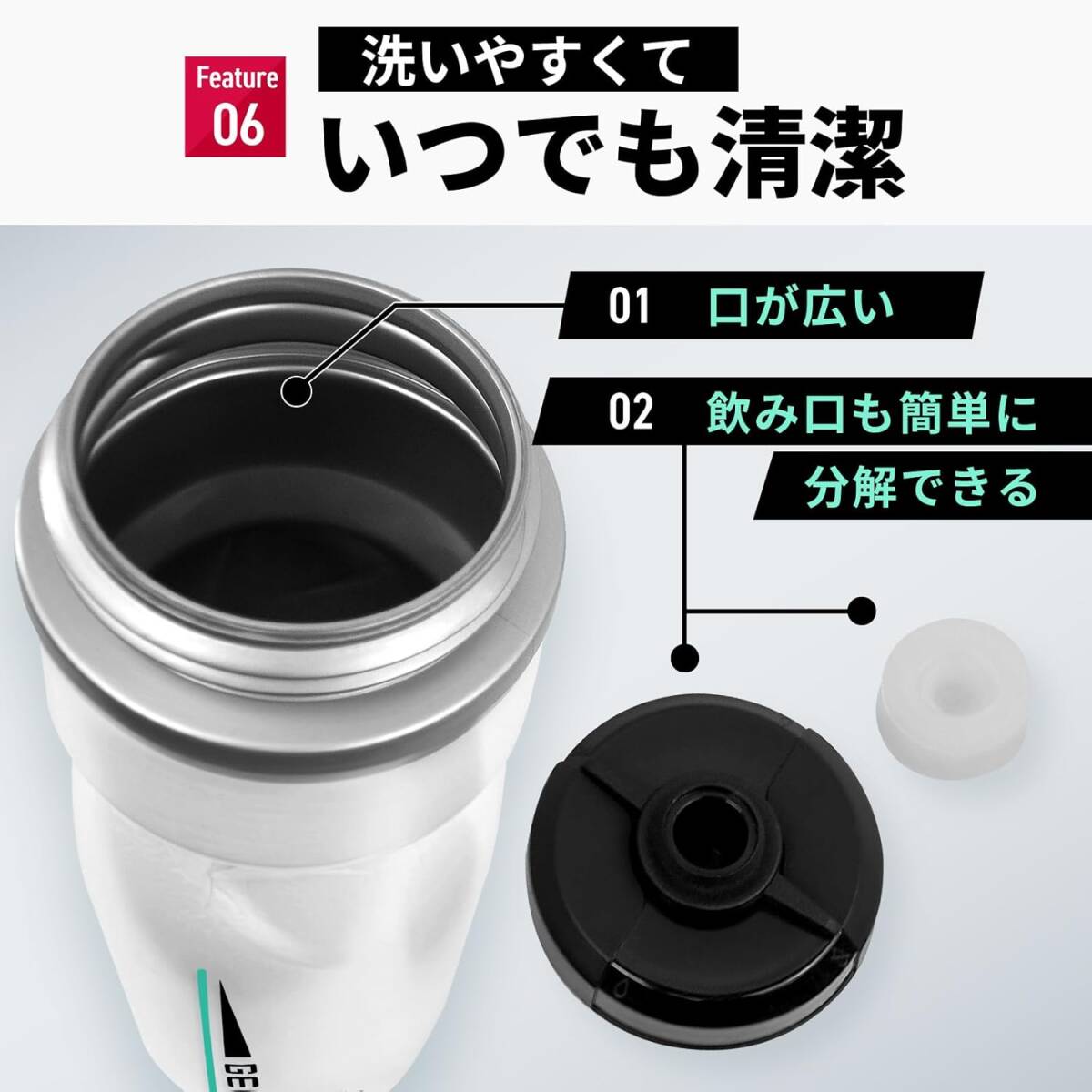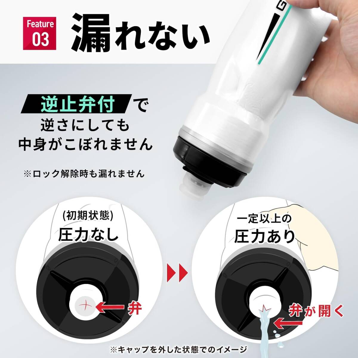 • 【漏れない設計】この保冷ボトルは、逆止弁付きのため逆さにしても漏れません。走行中はロックを解除したまま使用しても、振動で水が漏れることはありません。ロードバイクやグラベルロードでの使用に最適な設計です。