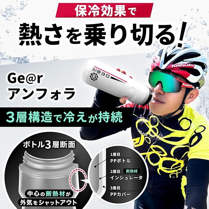 • 【保冷効果】暑い夏のサイクリングにも最適なこの自転車用ボトルは、3層レイヤーで中間層に断熱材を使用しており、外気温35度でも4時間以上の保冷効果を発揮します。サイクルボトルとして、ロードバイクやクロスバイクでの使用に最適です。