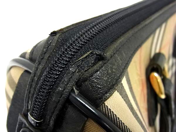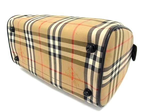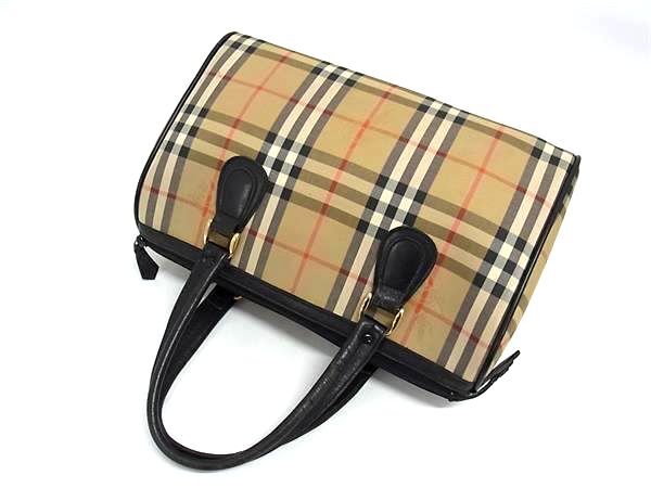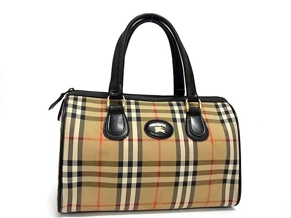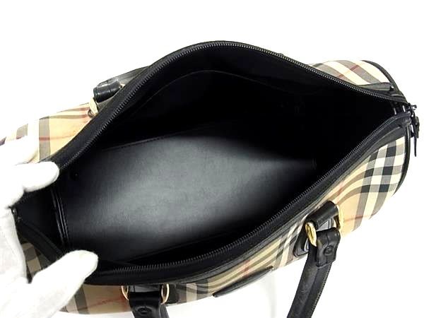 1円 Burberrys バーバリーズ ノバチェック キャンバス×レザー ハンドバッグ トート ミニボストン ベージュ系×ブラック系 FR4626