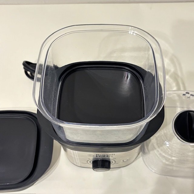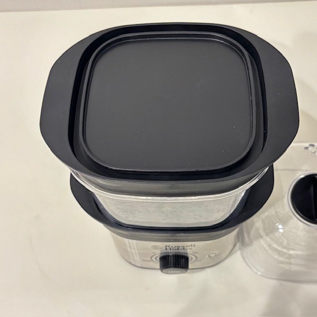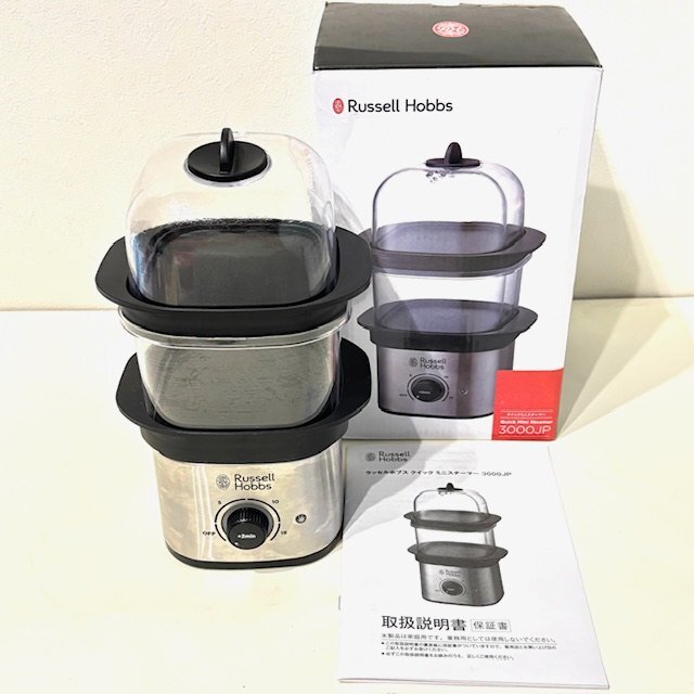 商品説明 ラッセルホブス クイックミニスチーマー 3000JPです。 コンパクトながら2段式で様々な食材を同時に蒸せる電気スチーマーです。 蒸し野菜やゆで卵、離乳食作りなどに活用できます。 火加減を気にせず、水と食材を入れてタイマーをセットするだけで調理が完了します。 空焚き防止機能や調理完了を知らせるブザー機能も搭載されています。 ウォータータンクはフッ素加工されており、油汚れや水垢が付着しにくく、お手入れが簡単です。 詳細 ●サイズ:幅15.5cm × 奥行13.5cm × 高さ25.5cm・重量:約0.85kg・コードの長約1.0m ●付属品:取扱説明書 ●動 作:動作確認済み ●ランク:Cランク ●コンディション:本体にやや汚れやくすみがあります。 外箱にはシールを剥がした痕が残っています。 |