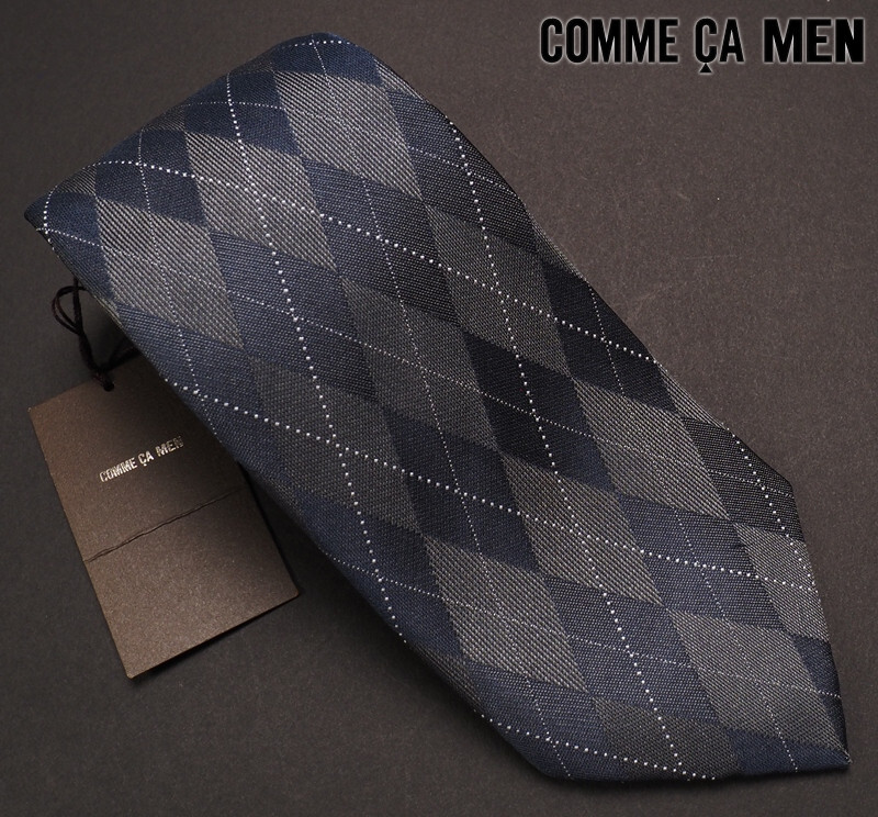 新品サンプル定価1.1万円 COMME CA MEN コムサメン 日本製 シルク100% ネクタイ 紺 9999-B