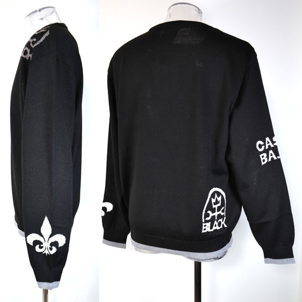 | ■形状/ 家紋とロゴが編み込まれた丸首(クルーネック)セーターです。 厚すぎずインナーで着用時もかさばりません。 |