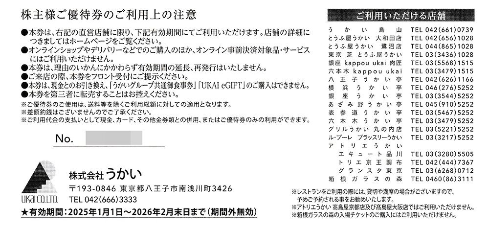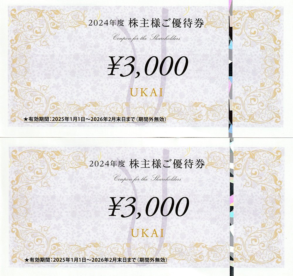 出 品 商 品 | うかい 株主様ご優待券 6000円分(3000円券×2枚) |