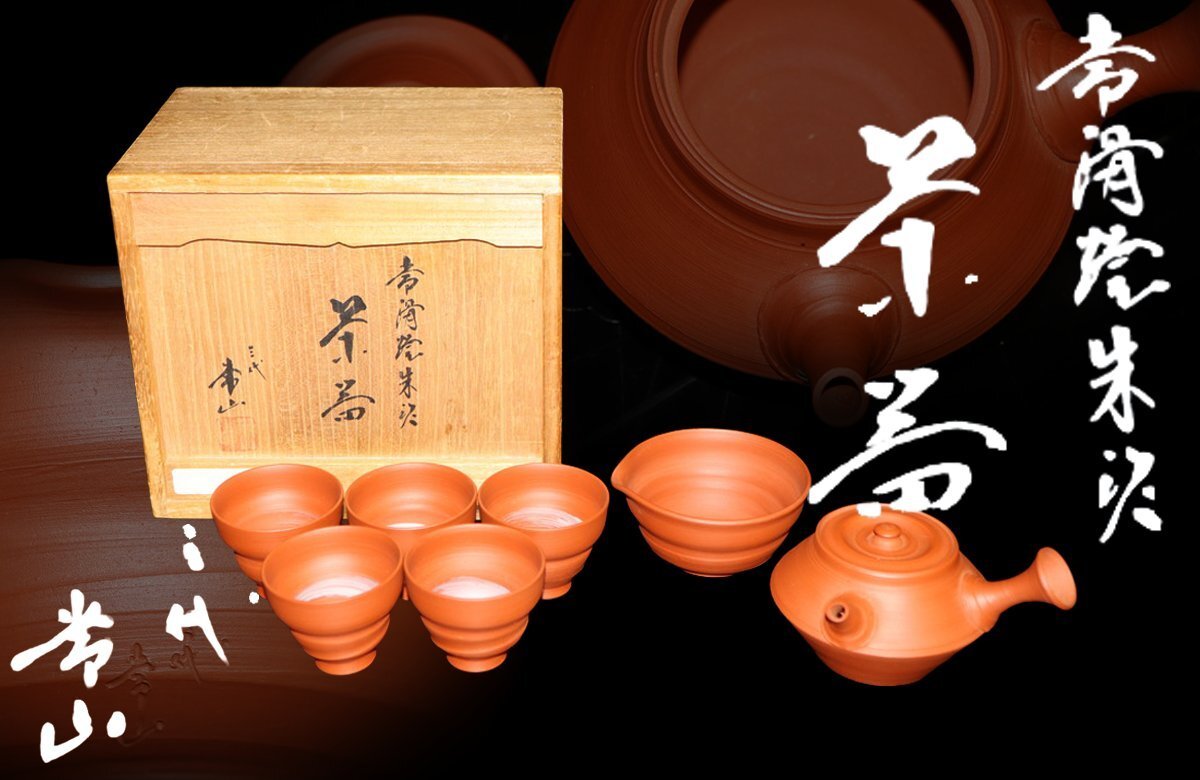 商品名 | 【江】人間国宝 三代 山田常山造 常滑焼 朱泥茶器揃 筋文横手急須 湯冷まし 湯呑 5客 在銘 古美術品(茶道具煎茶器土瓶)X1791 ATDBehhg |