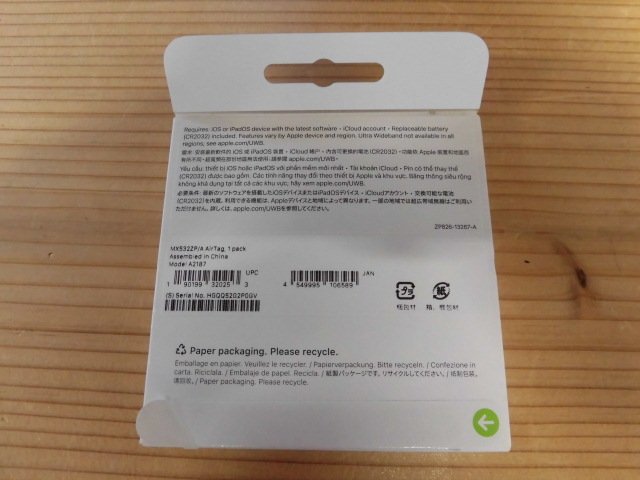 未使用 未開封 AirTag 1 pack MX532ZP エアタグ Apple 交換可能な電池内蔵 箱凹みあり シール剥がれあり 激安1円スタート