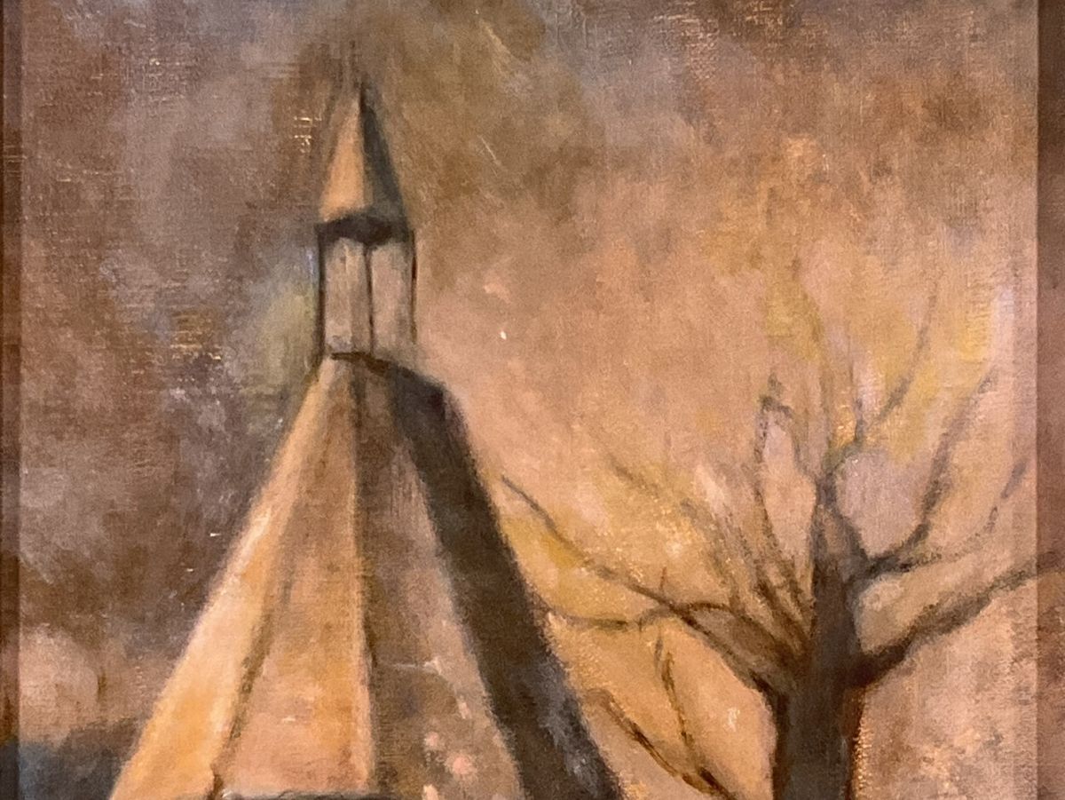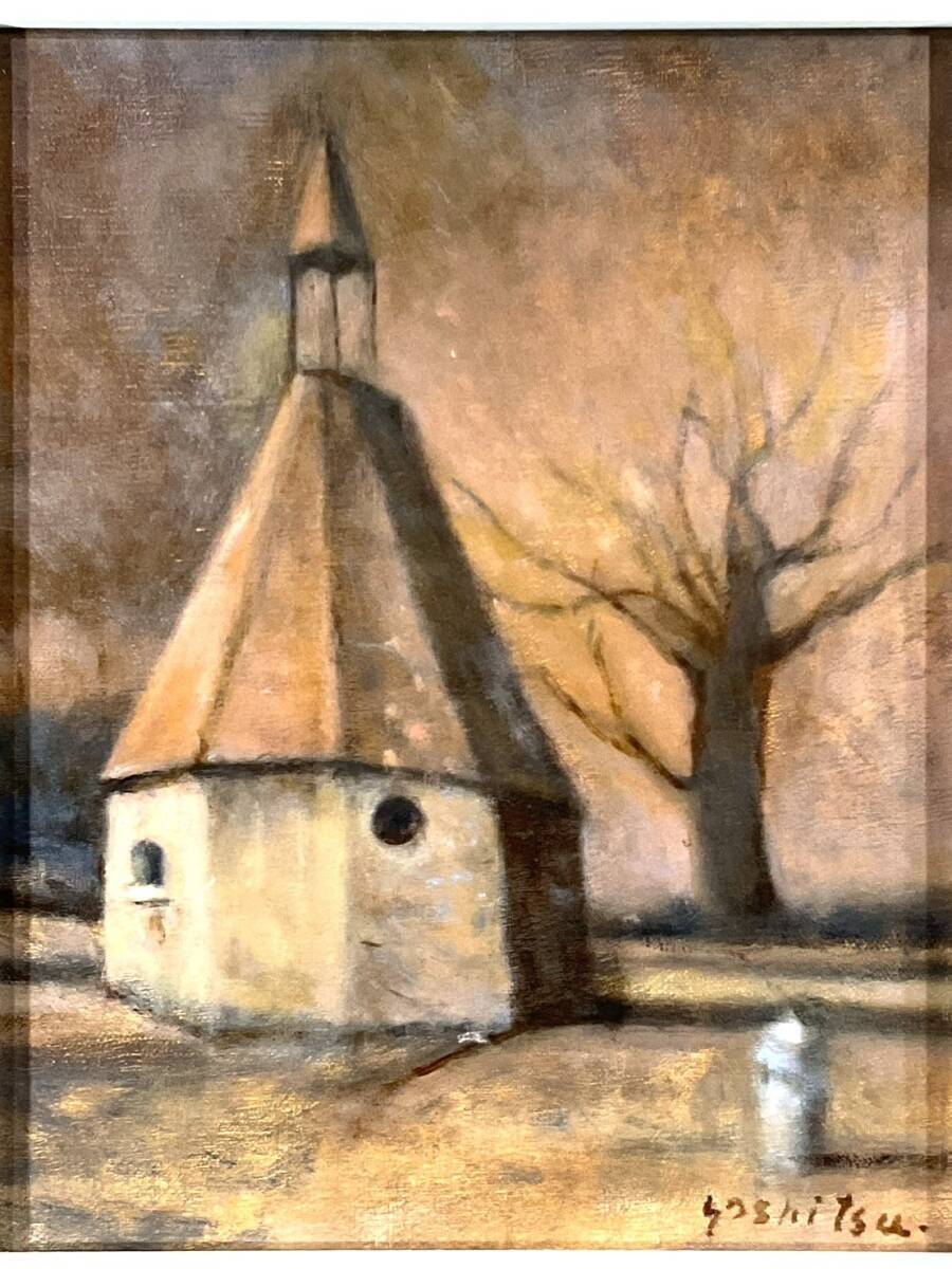真作■油彩■鏑木義次■『小さな礼拝堂』■美しい逸品■額付絵画