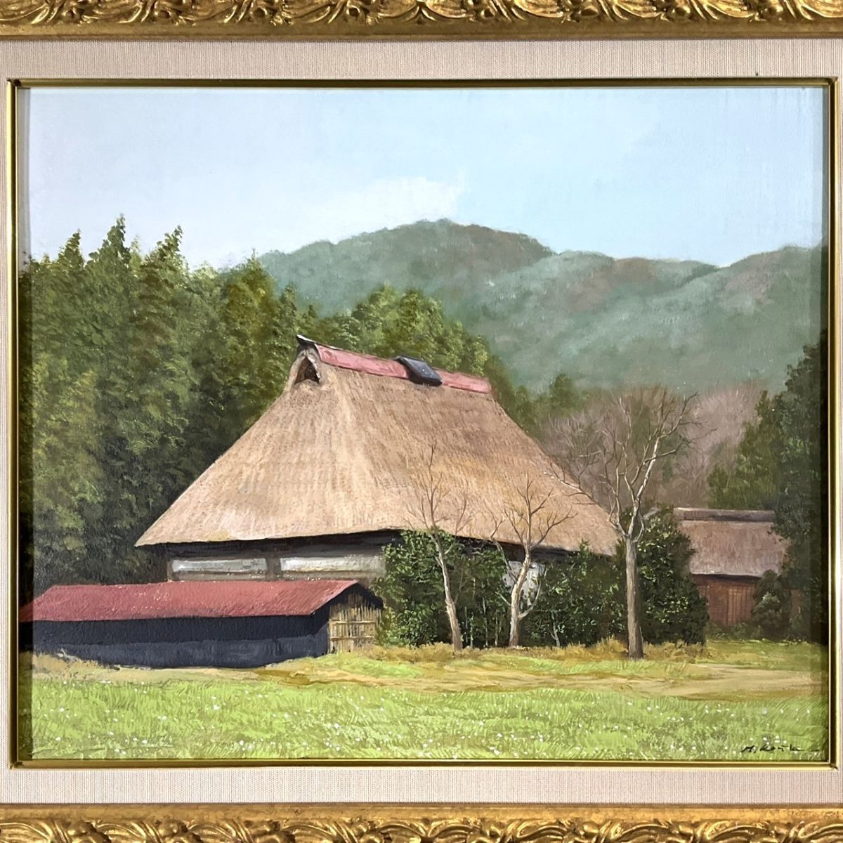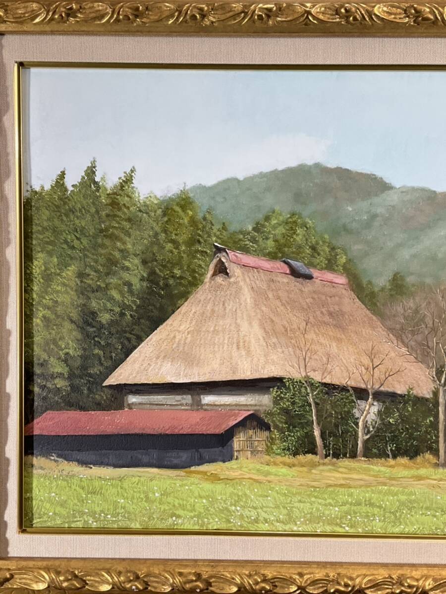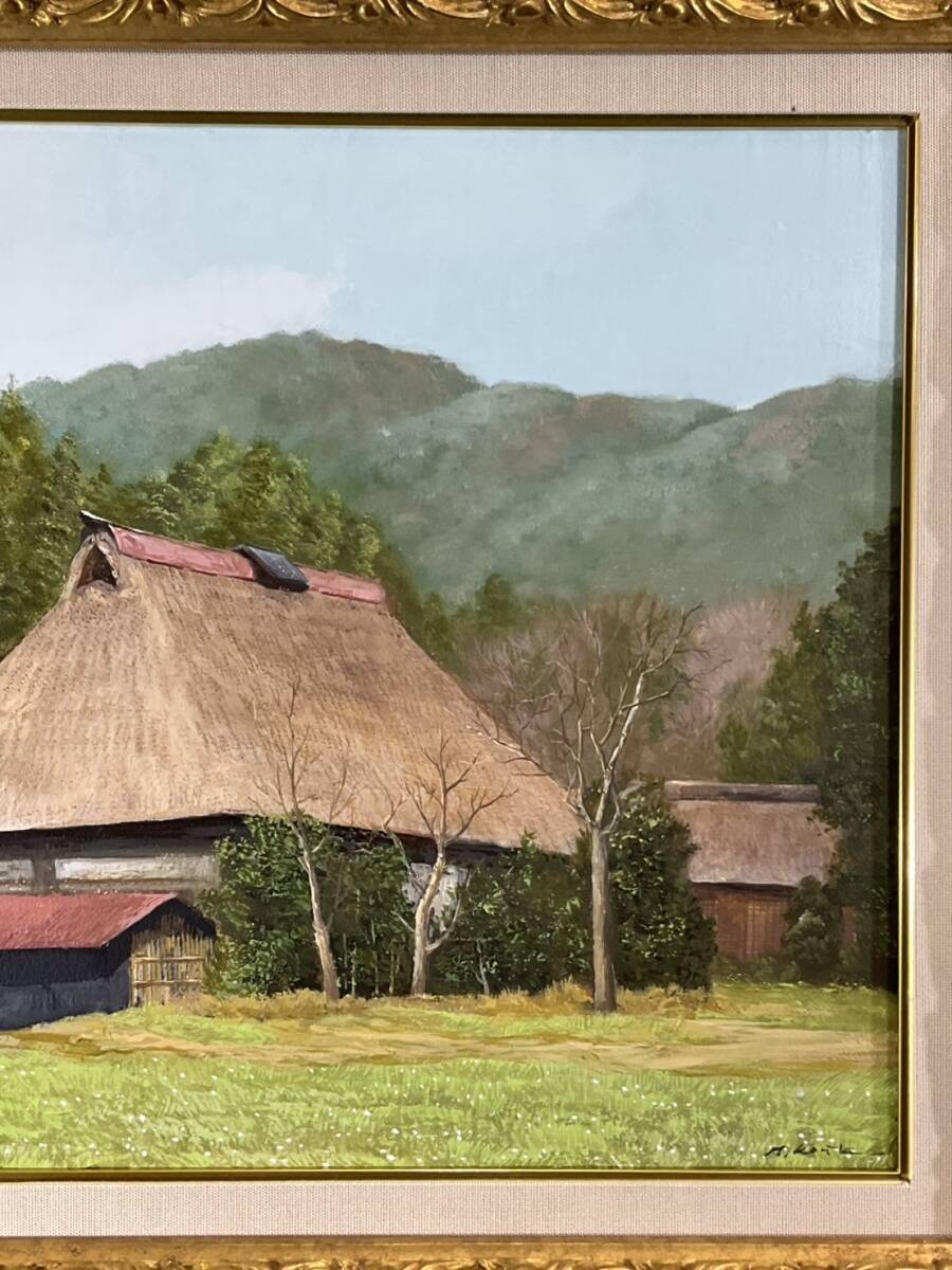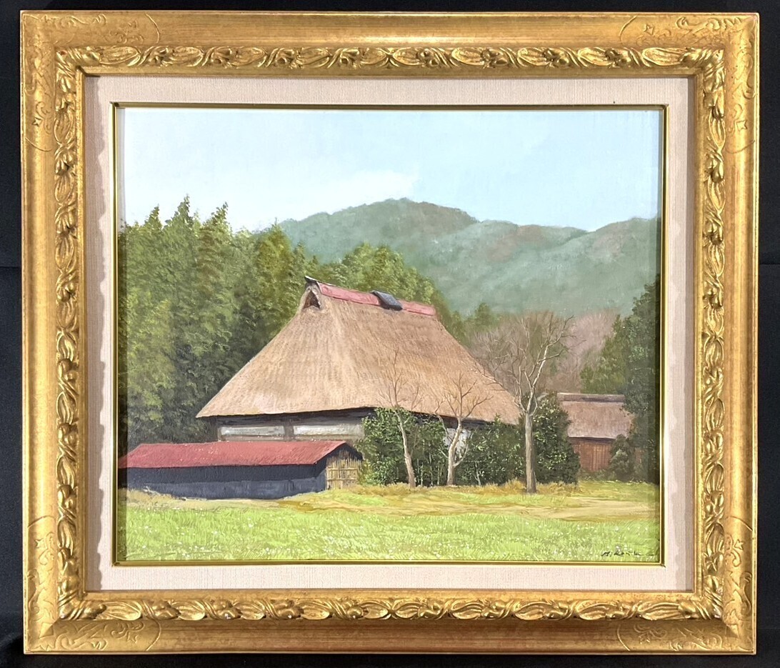 真作■油彩■古宇田公仁■『春の民家』■リアリズム ・風土会会員 百貨店等個展■美しい逸品■額付絵画