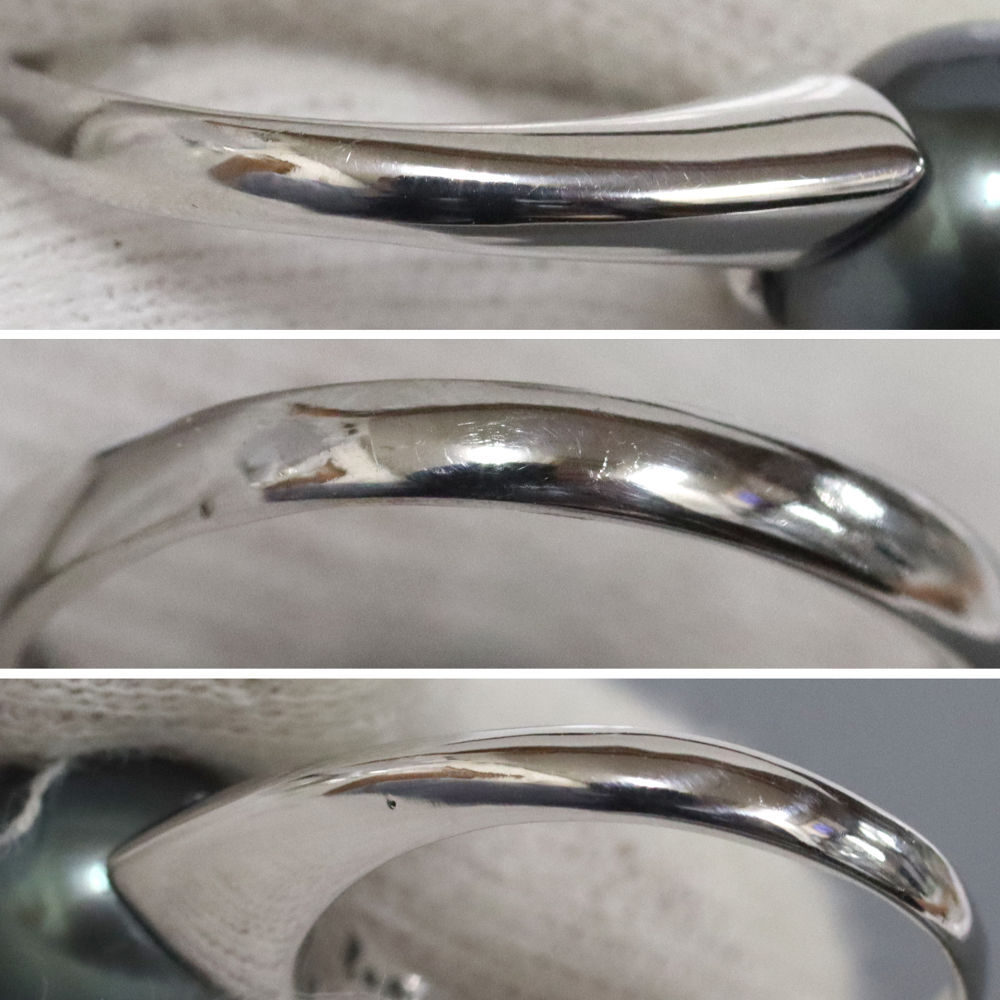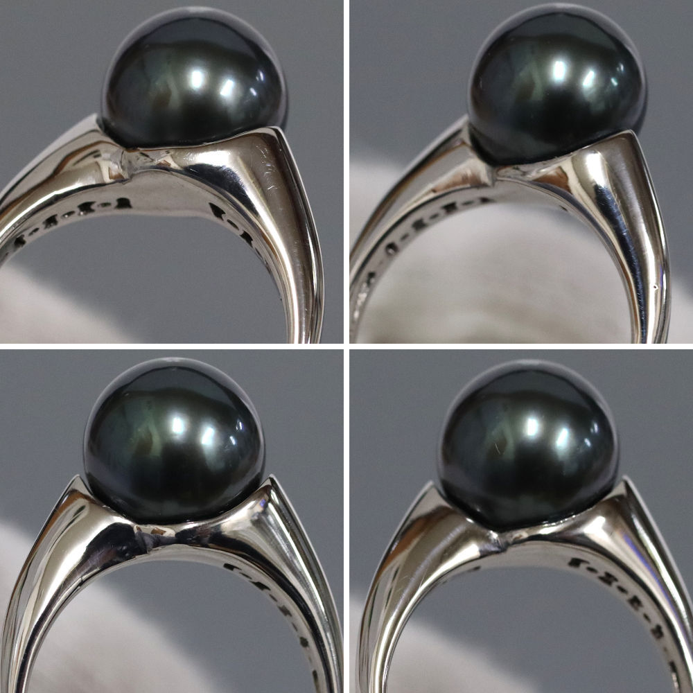 K18WGブラックパールリングの中古品です。 約10.1mmのブラックパールが使用されております。 目では見えませんが、パールに傷があります。 地金に使用に伴う傷がついています。 地金底部にサイズ直しの跡があり、内側にひびが入っています。 また、内側のホワイトゴールドメッキが薄くなっており、わずかに黄色っぽく見えます。