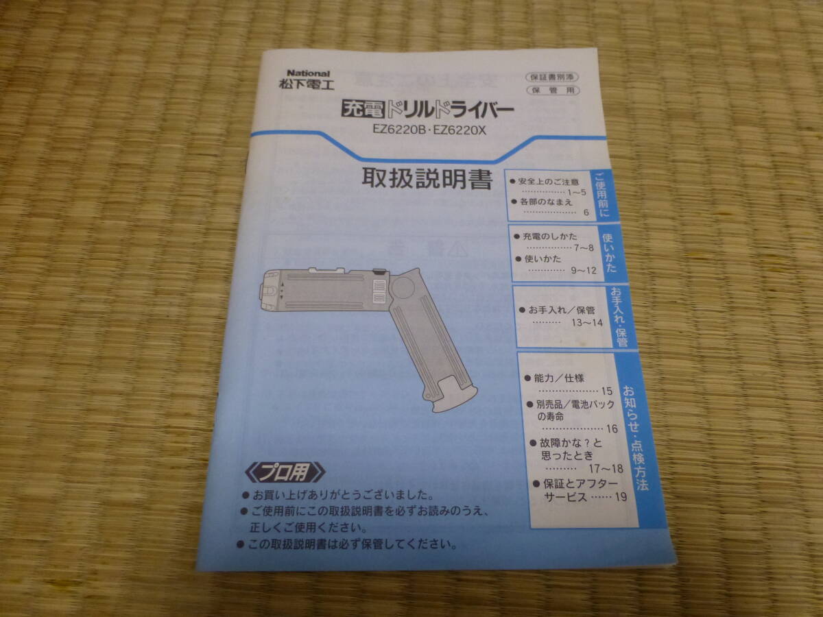 National 松下電工 充電ドリルドライバー 充電器付 EZ6220B、中古です。
