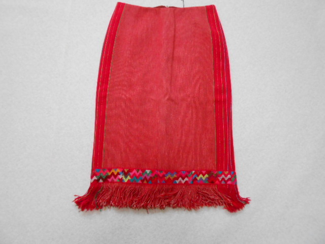 鮮やかなレッドカラーが目を引くタイトスカートです。