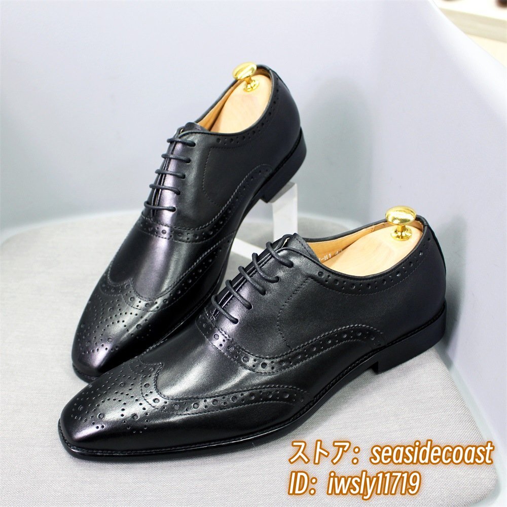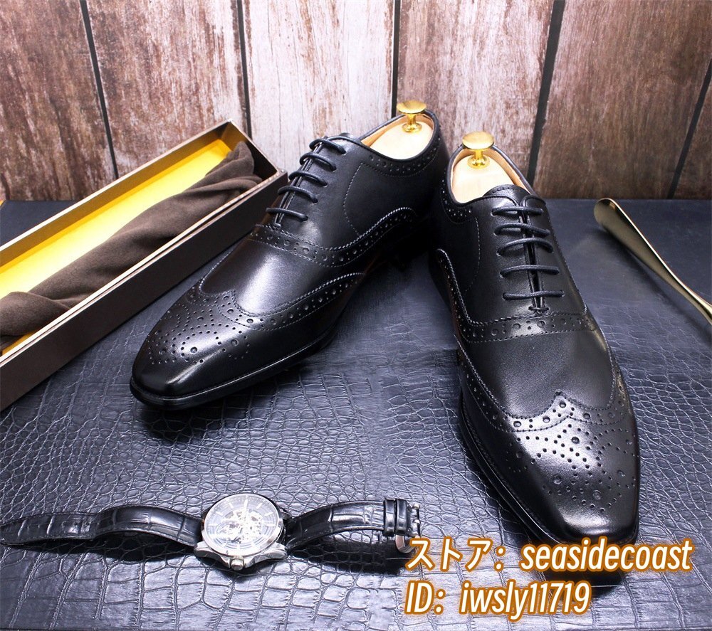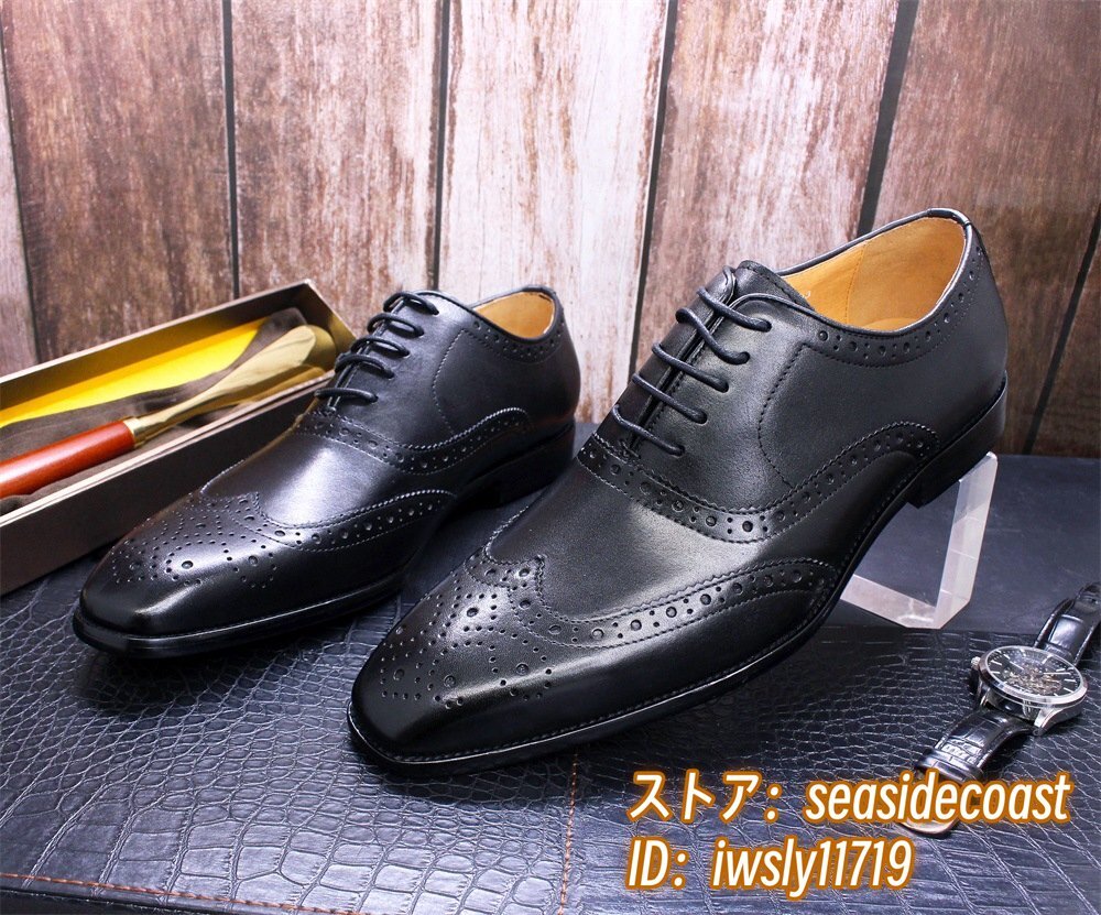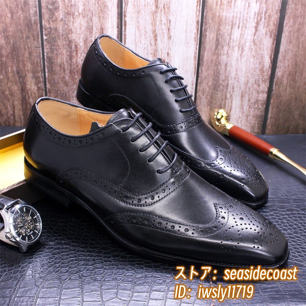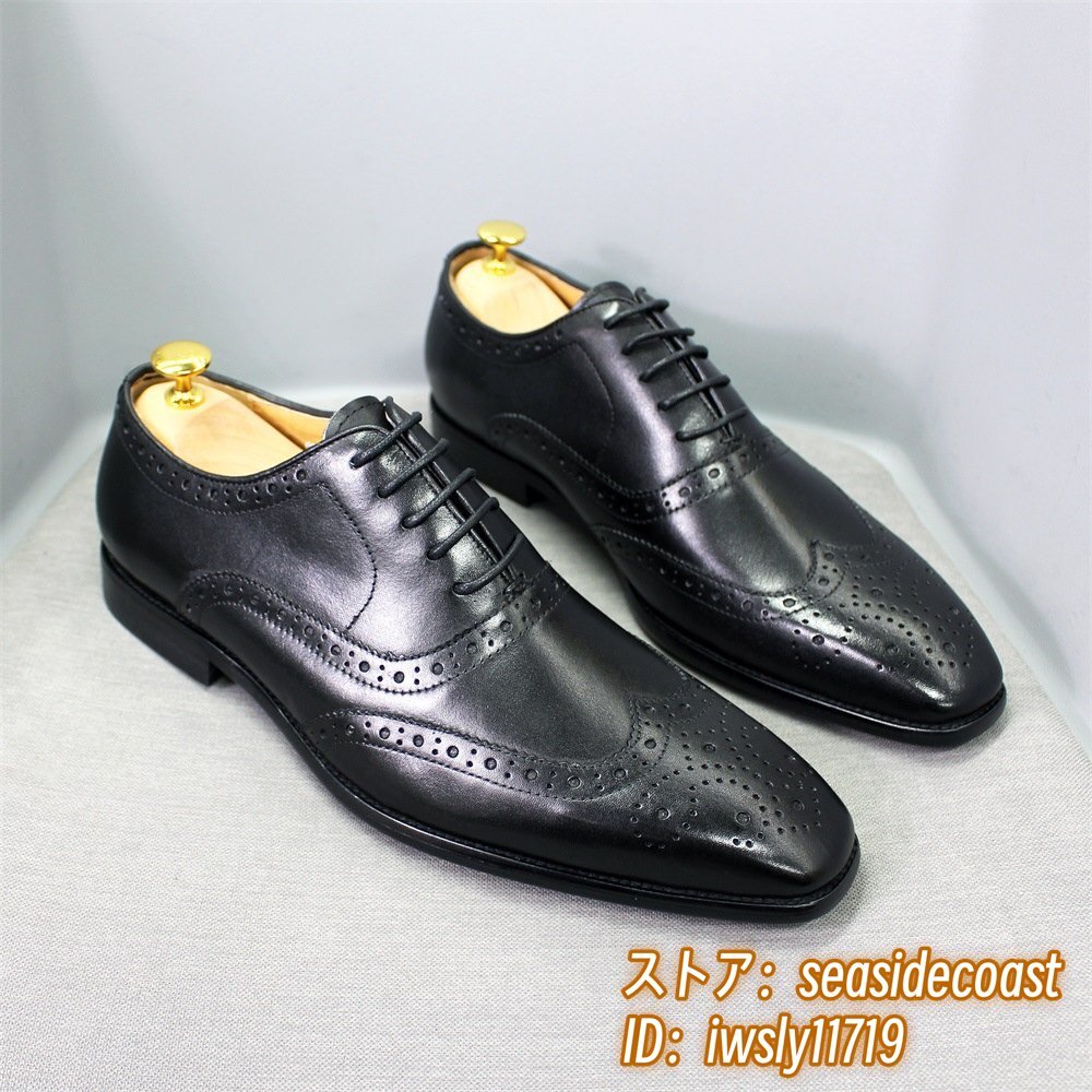 定価9万◆最高級 本革 ビジネスシューズ 職人手塗仕上げ 彫り 牛革 レザーシューズ メンズシューズ 新品 革靴 フォーマル ブラック 26.0cm