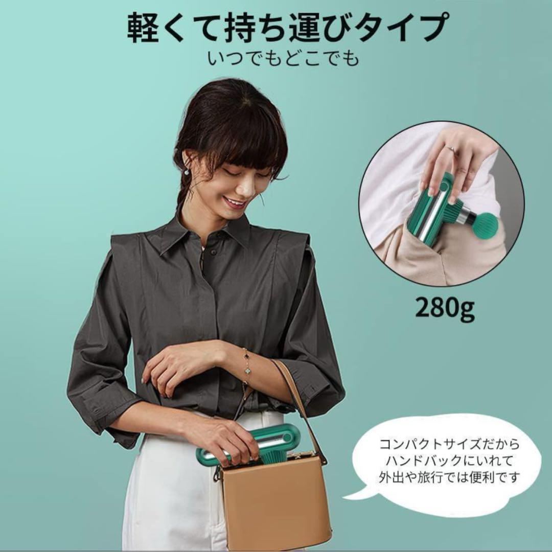 低騒音・多機能 24Vのテクノロジー電動搭載!振動音は、騒音レベル45dbと最小限に抑えているので、周囲に迷惑がかからないようにデザインされております。持ち運びに最適なコンパクトなサイズ、本体が約280gと、軽量仕様の ハンディ振動マシンなので、女性でも片手で楽に使えます。