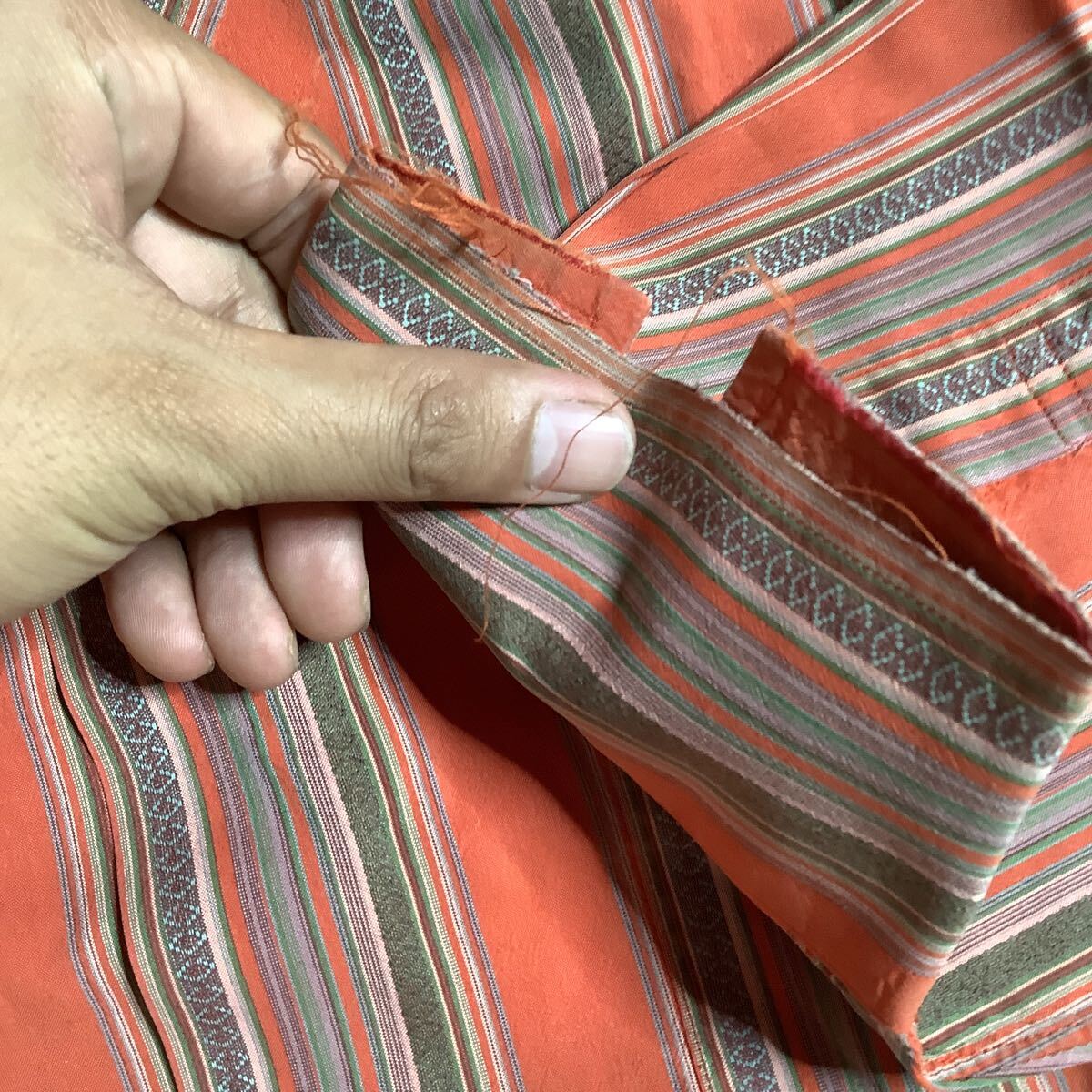 袖口付近にて生地ダメージがございます。