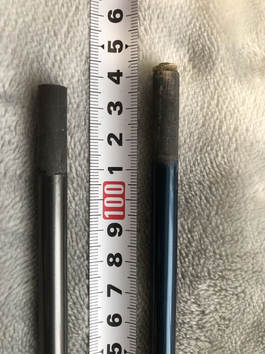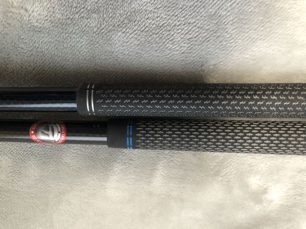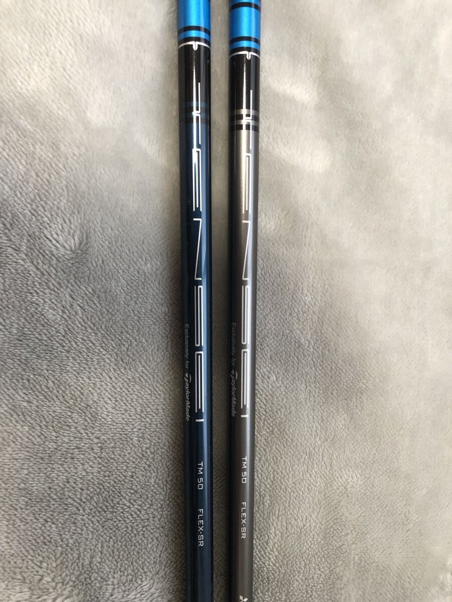TENSEのテーラーメイドシャフトの5Wと7Wから抜いたシャフトで、5Wがブルーぽい色で7Wはグレーぽい色です。