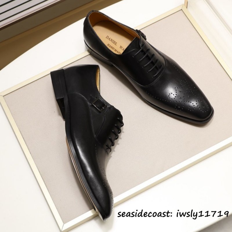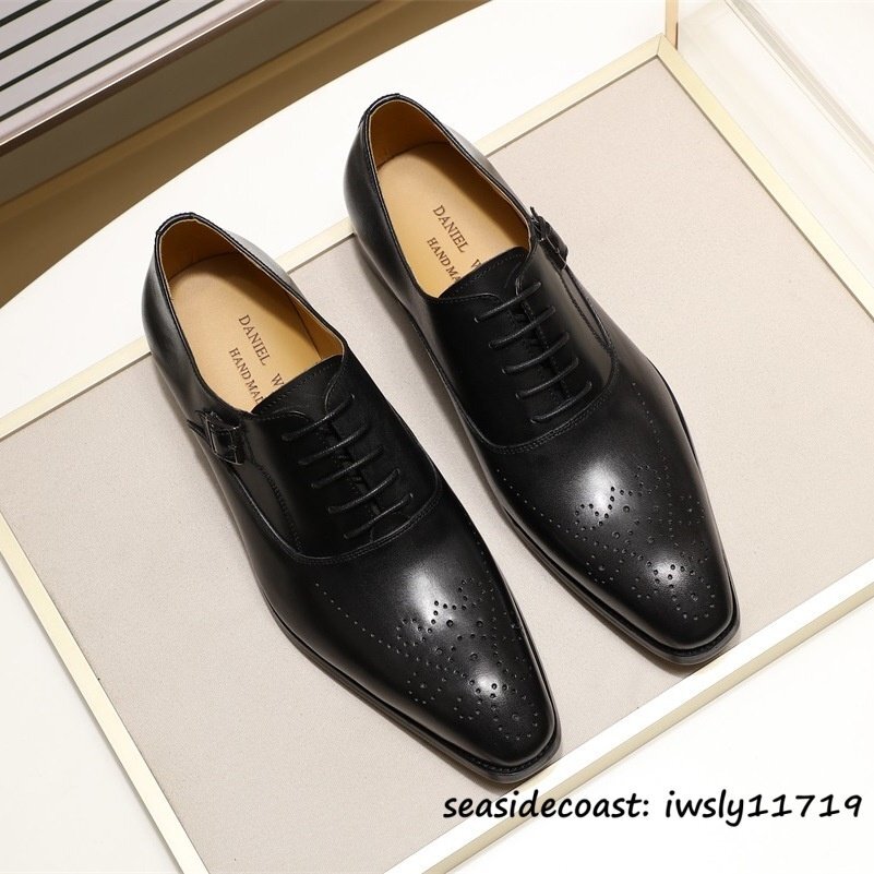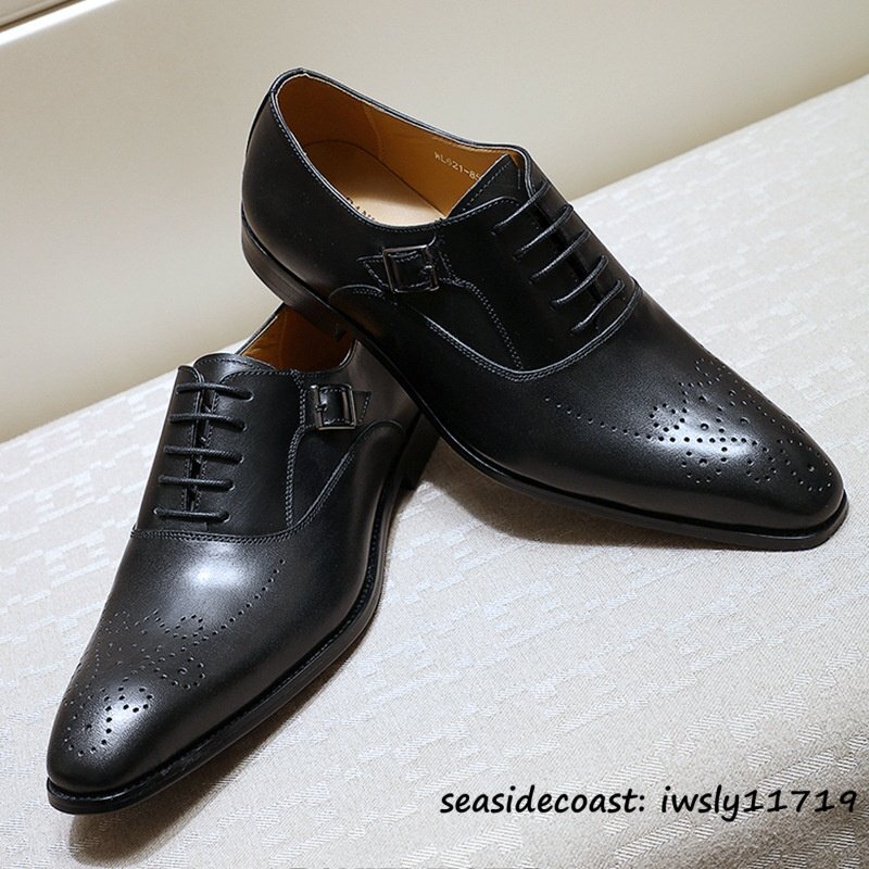 定価9万■メンズ ビジネスシューズ 最上級 本革 レザーシューズ 職人手作り 彫り イギリス風 紳士靴 革靴 牛革 フォーマル ブラック 26.0cm