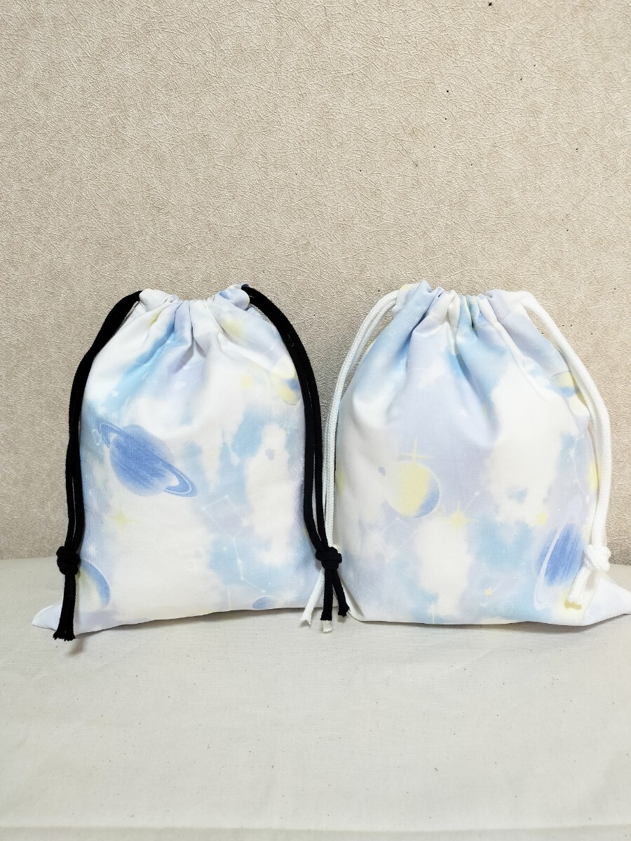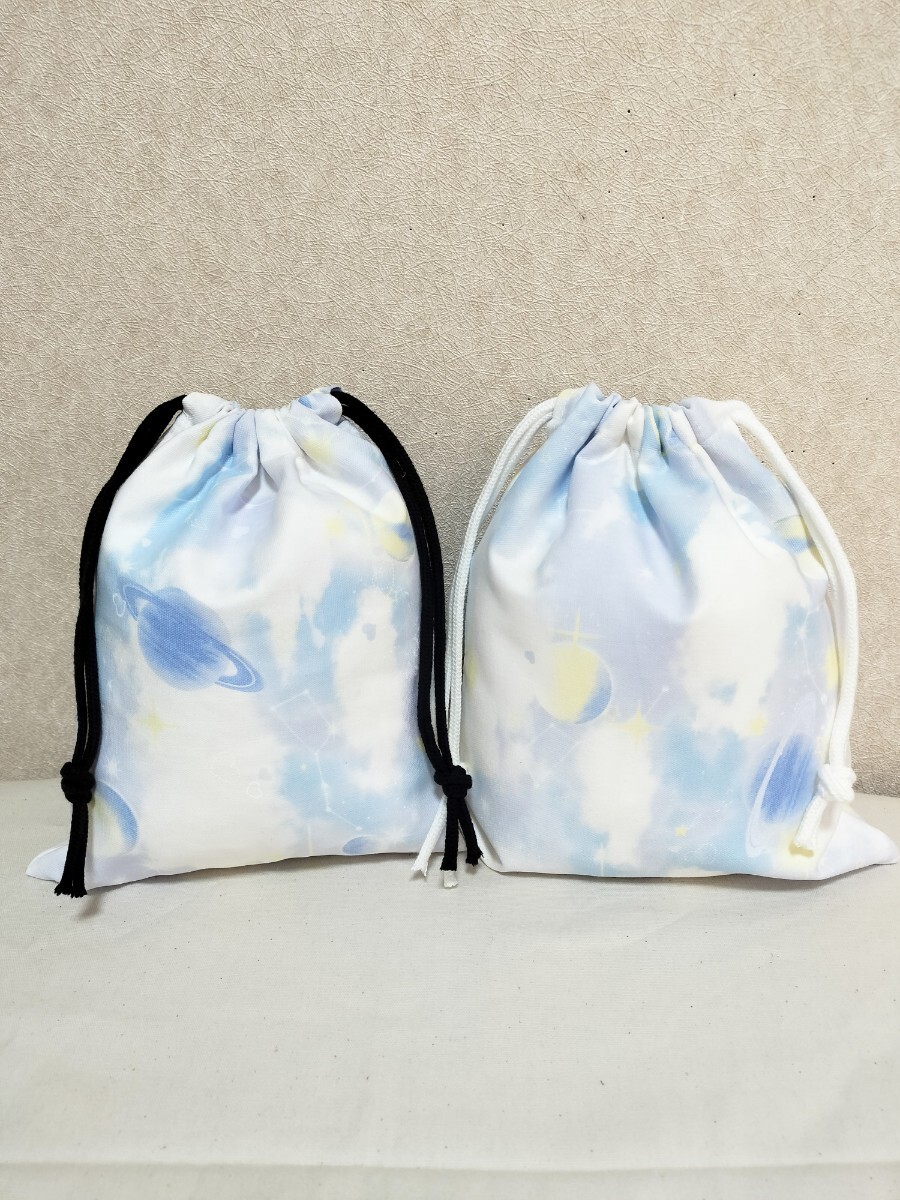 こちらは宇宙モチーフが可愛い 巾着袋2点セット です。