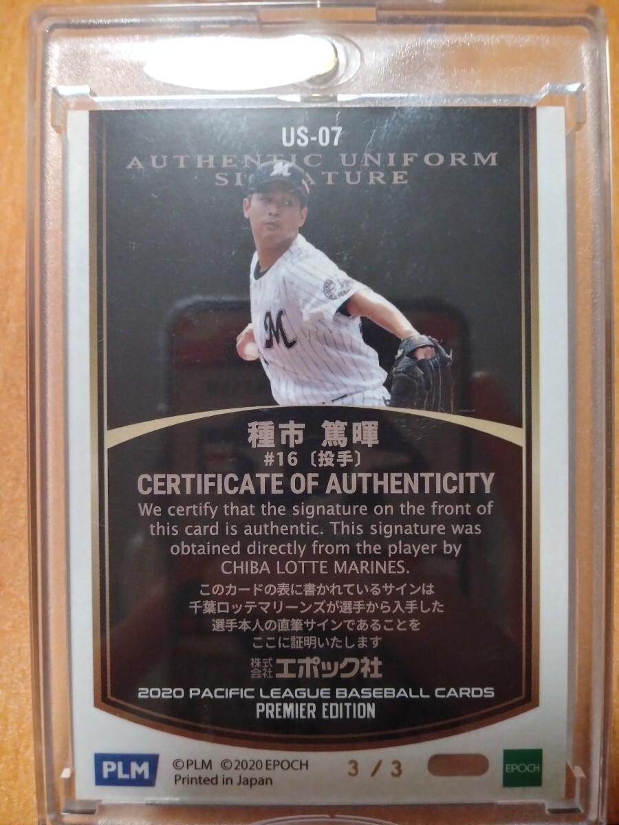 商品名 : 種市篤暉 千葉ロッテマリーンズ 直筆サインカード ユニフォーム EPOCH 種市 ロッテ サイン 3枚限定 3/3 ラストナンバー 侍ジャパン