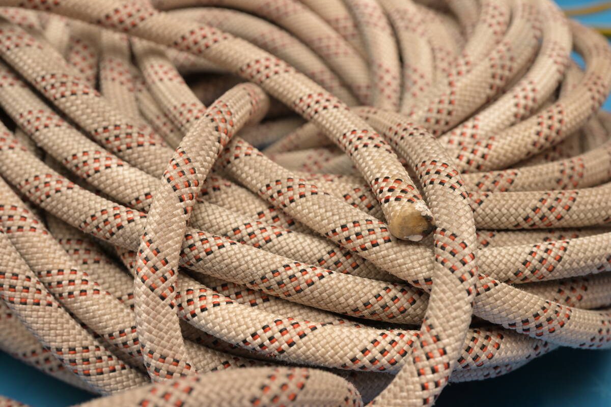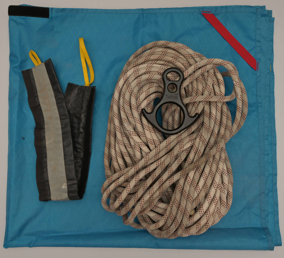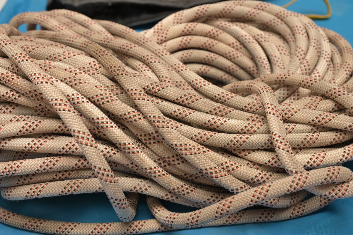 元々ブラックダイヤモンドのストーンダッフルに付いているロープマットです。実用良好。地面からの砂・汚れの巻き込みを軽減し、ロープ寿命の延伸に役立ちます。撮影時に折りたたみしているため、見えているのは全体の約1/4です。マット全体の状態は良好です。