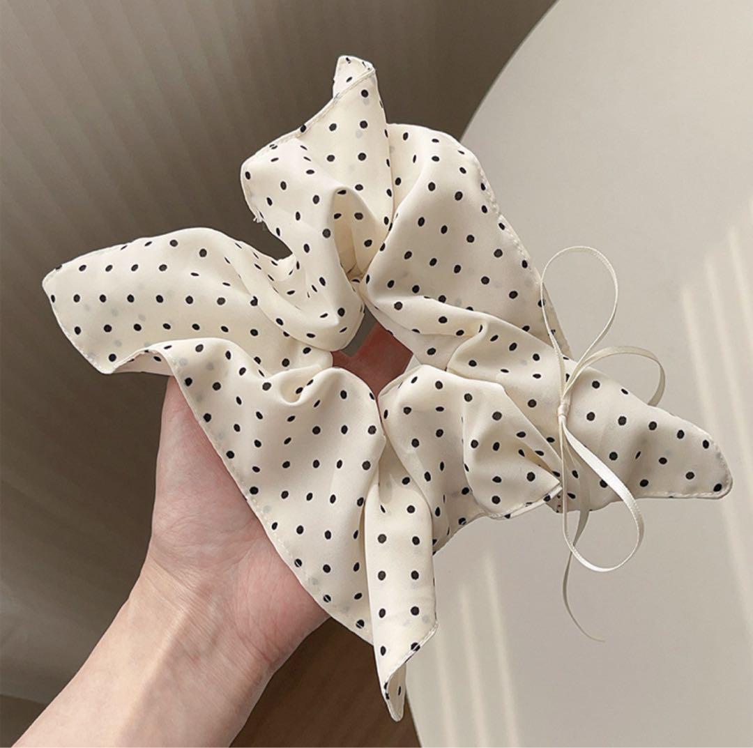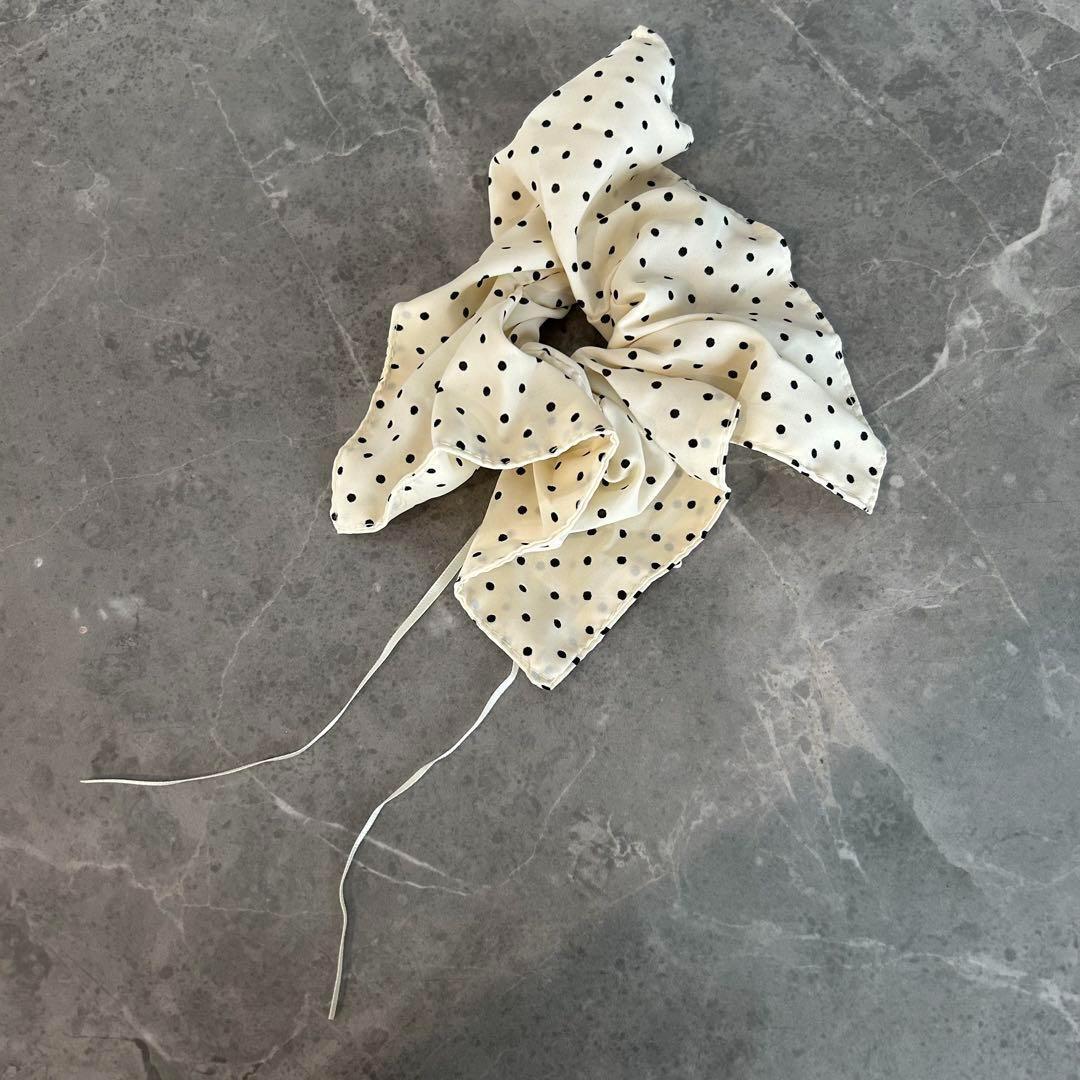 スクエアシュシュ ドット柄(ホワイト)