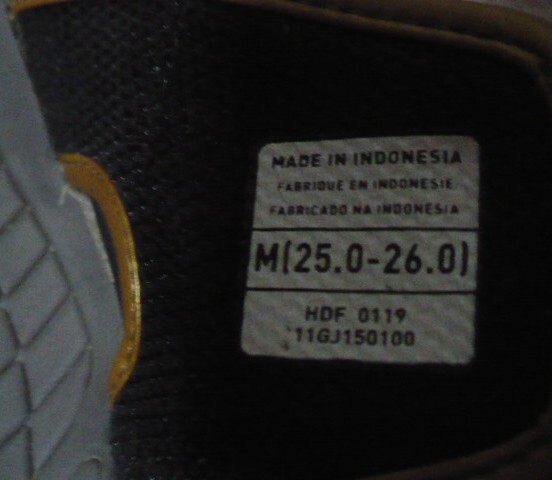 また右足のサイズ表記部分のプリントダメージ有り、