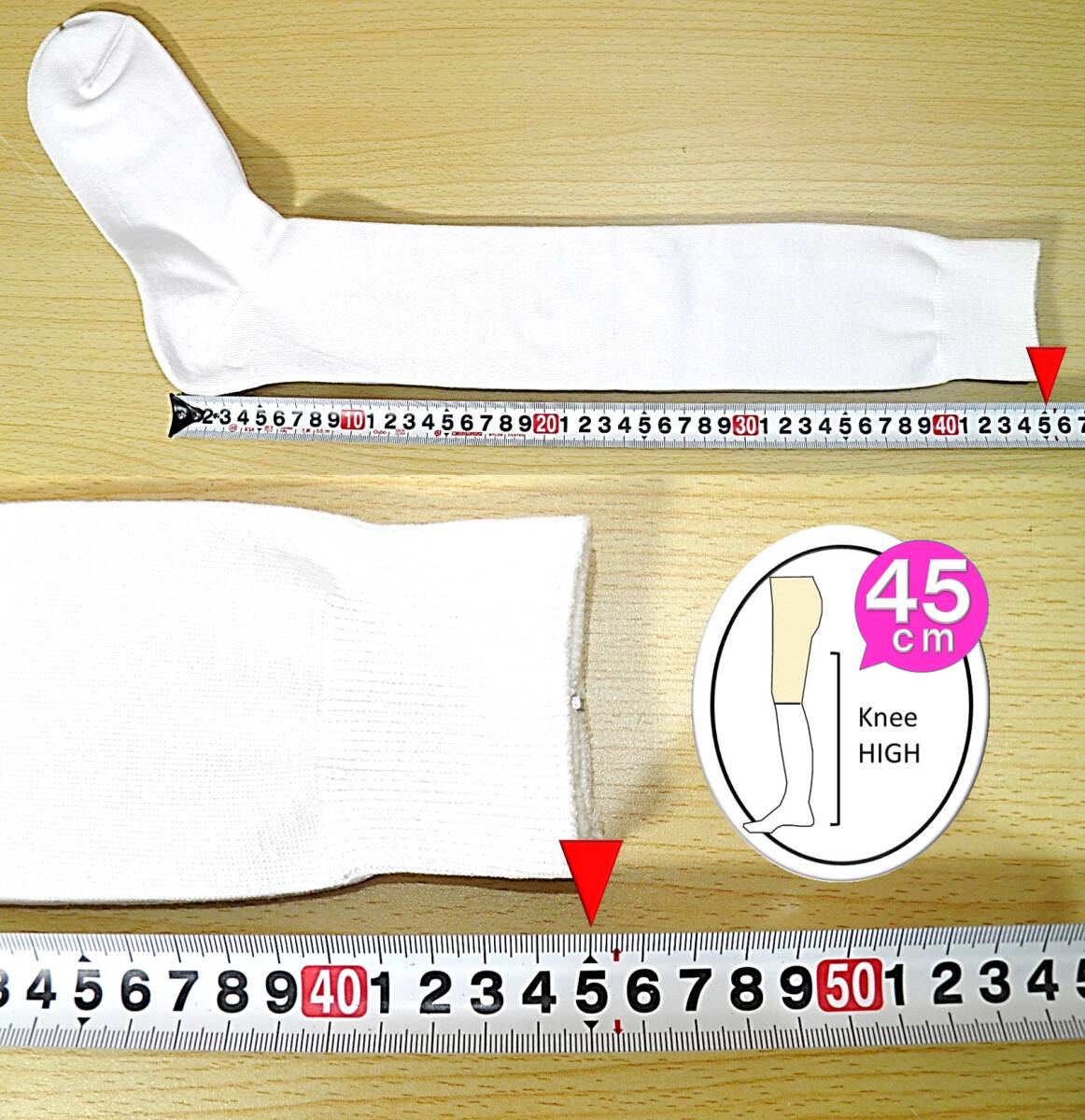 【レッグウェア★未使用品】平編み◆白 ハイソックス◆大寸◆28-30cm◆45cm丈◆BIGサイズ