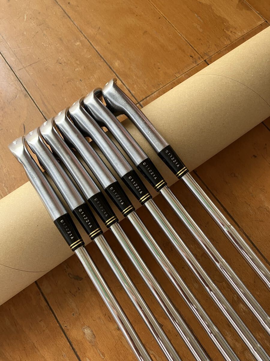 商品説明: Mizuno Pro MS-5 ミズノ used メンズアイアンセット 7本(7番欠品) ライフル FCM5.5 シャフト 右利き用 3.4.5.6.8.9.P. 計7本 (5番 約417g 約94.5㎝) 7番が欠品しています。極端なダメージもなく綺麗な方だと思いますが全体的に使用によるキズ、汚れ、サビ、グリップの劣化等があります。明るく撮影をしていますので実際と若干の違いがあると思いますのでご了承願います。専門的な知識もないので質問はお控え下さい。説明と画像でご判断いただきジャンク扱いとしてのお渡しになります。禁煙、ペットなし。同梱不可。プチプチで巻いた簡易梱包にて発送。