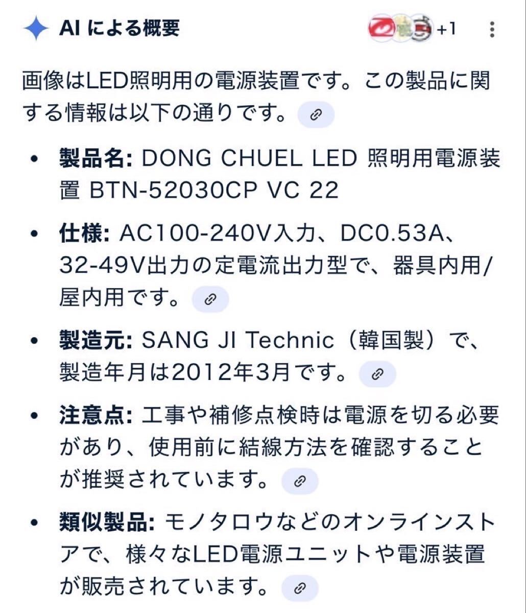 - 製品名:DONG CHUEL LED 照明用電源装置