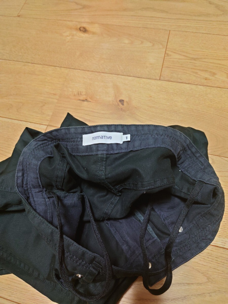 中に付いてる紐と、裾にあるジッパーでシルエット調整が出来る仕様になってます。