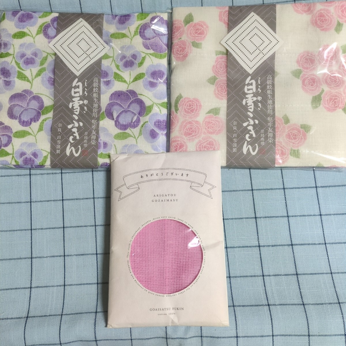 白雪友禅ふきん薔薇 ピンク・パンジーブルー 中川政七商店 ごあいさつふきん未使用ですが自宅保管上の汚れや傷がございます。シールの剥がした跡がある場合があります。