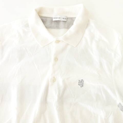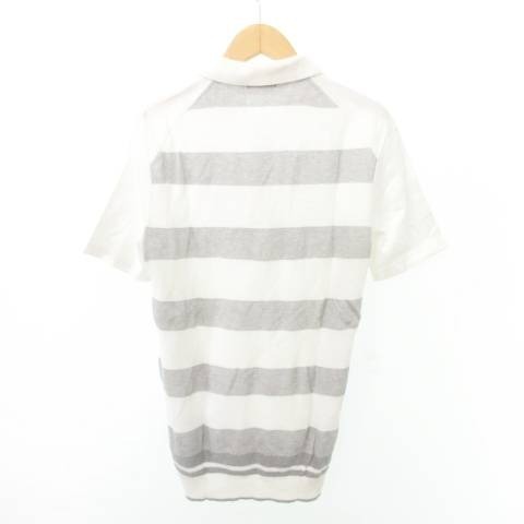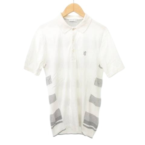 プリングル Pringle 1815 ポロシャツ 半袖 ボーダー ロゴ 薄手 38 約Mサイズ 白 ホワイト ■YHS6 メンズ