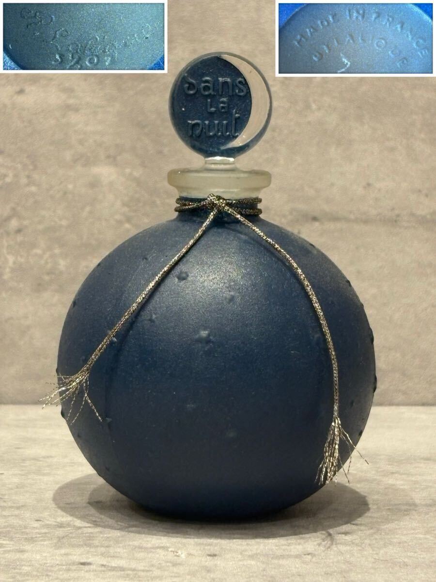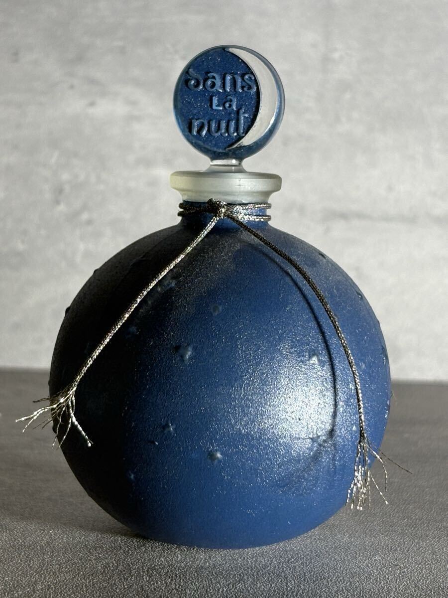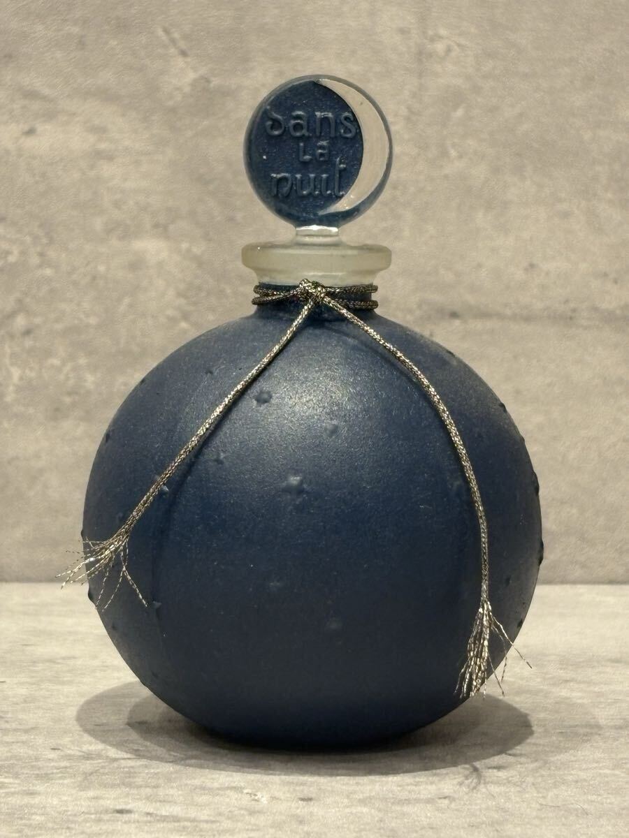 深いコバルトブルーのサテン仕上げガラスに、夜空を思わせる星のレリーフを散りばめ、ストッパーには作品名「Dans la Nuit」と三日月を象った名品です。