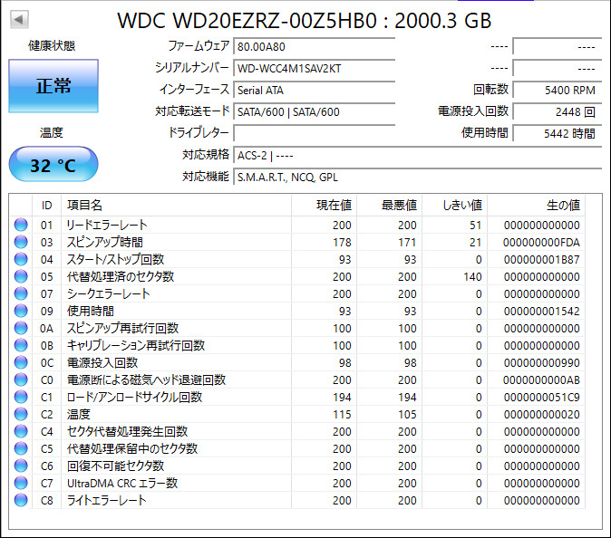 2台セット Western Digital WD20EZRZ 内蔵ハードディスク 3.5インチ 2TB WD Blue