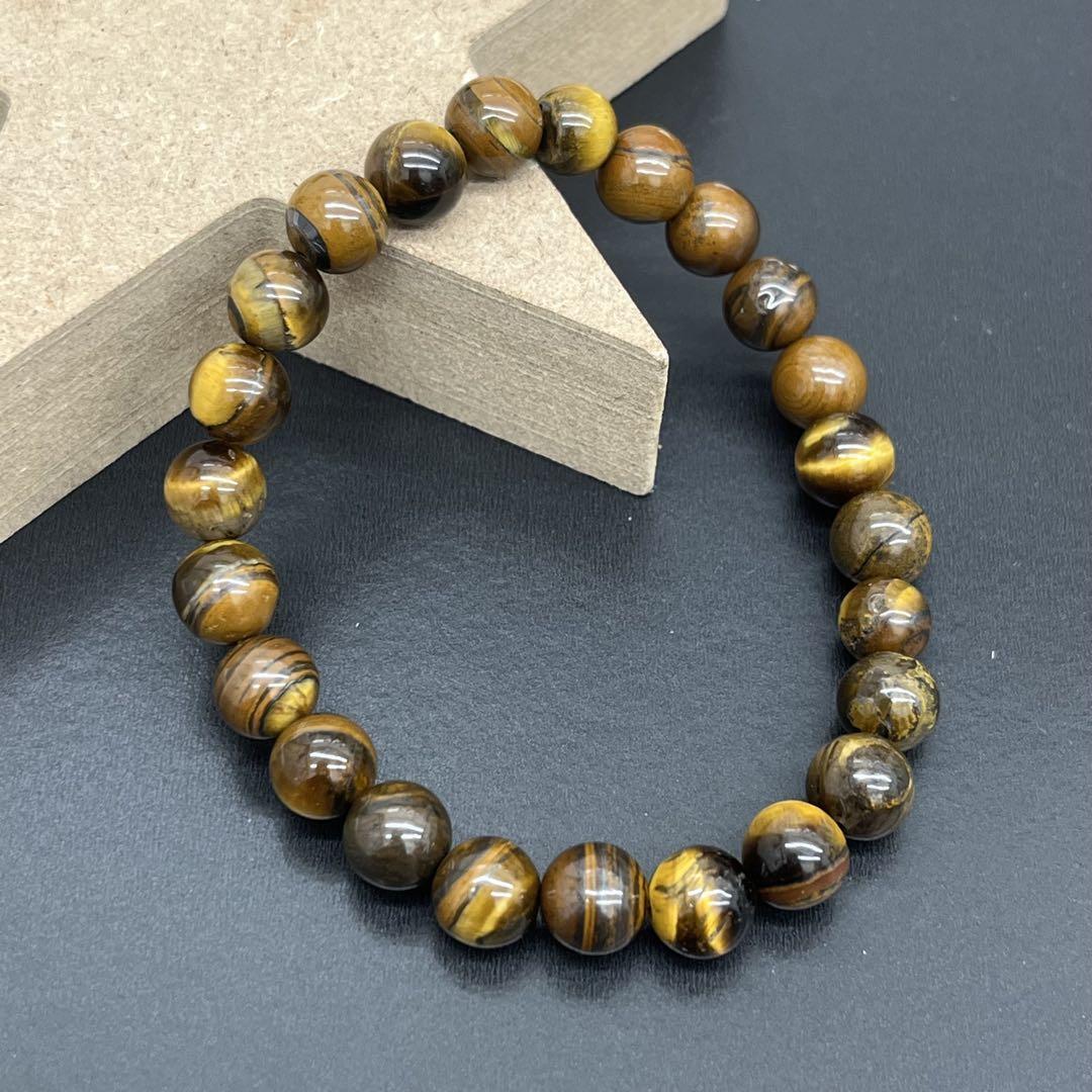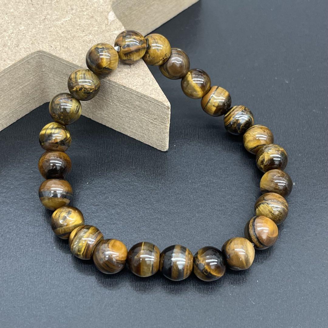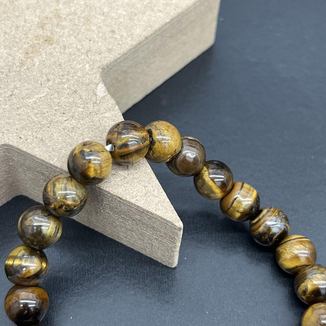 タイガーアイは、その美しい黄金色の縞模様から「虎の目」と呼ばれ、古くから幸運と繁栄をもたらす石として世界各地で愛されてきました。今回ご紹介するのは、8mm珠を使用し、内径約16cmに仕立てた天然石ブレスレットです。一般的な女性や細めの男性にもフィットしやすいサイズで、普段使いはもちろん、お守りとしてもおすすめです。