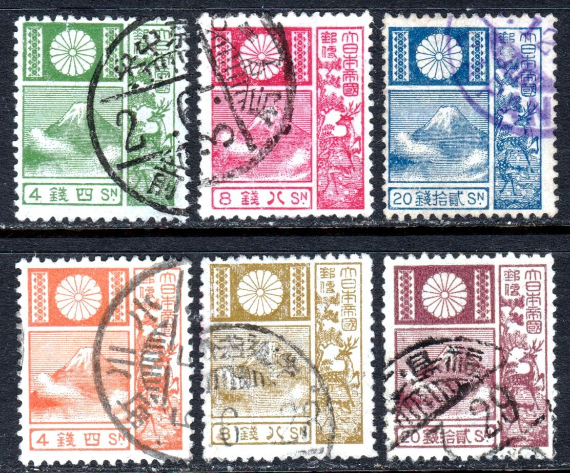 富士鹿 旧版・旧版改色6種完(希少な旧版改色8銭を含む),裂けや薄れの無い良品