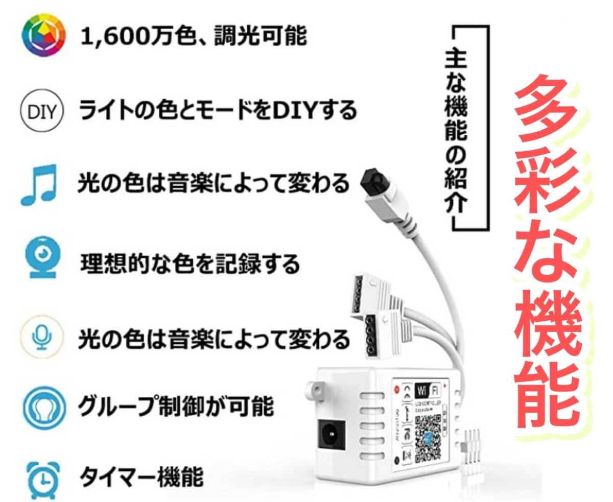 タイマー、色ピックアップ、DIY160万色選択、多種な変化モードや音センサー機能があります。