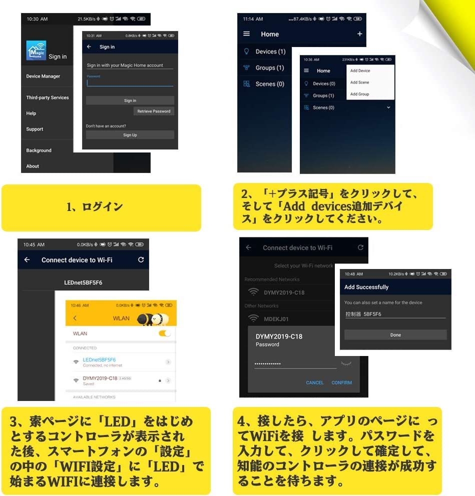 使用アプリ:magic home android 4.0/IOS 9.0 とその以上にて使用
