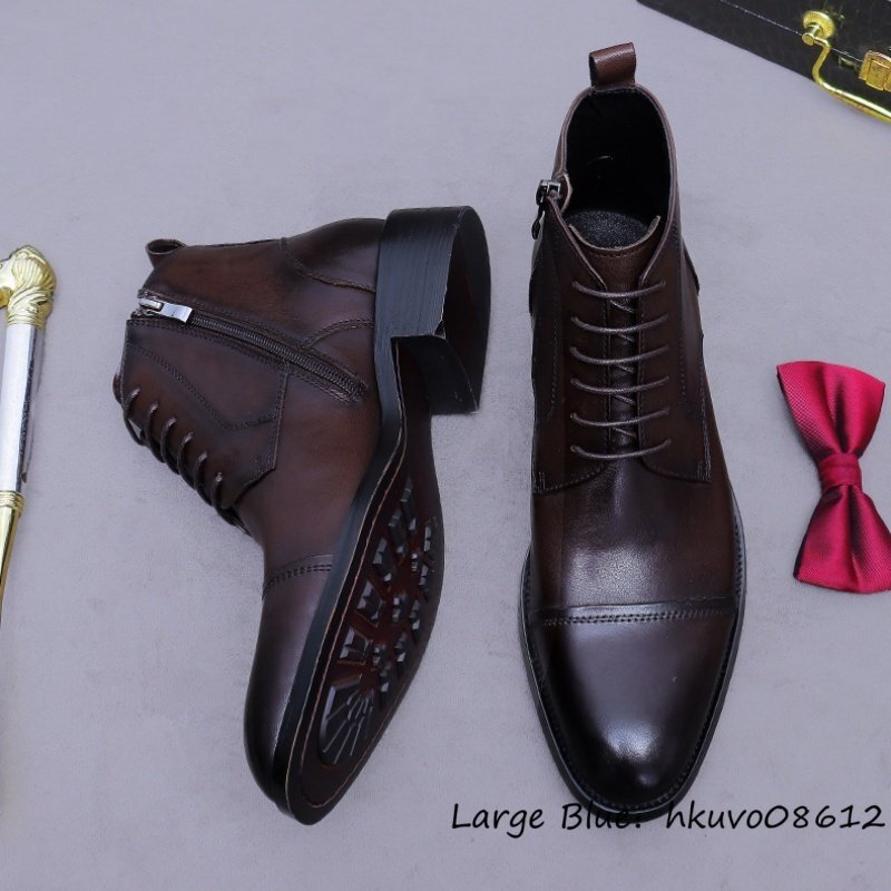 入手困難■ショートブーツ メンズ 高級牛革 レザーブーツ マーティンブーツ 本革 職人手作り オックスフォード フォーマル ブラウン 27.5cm