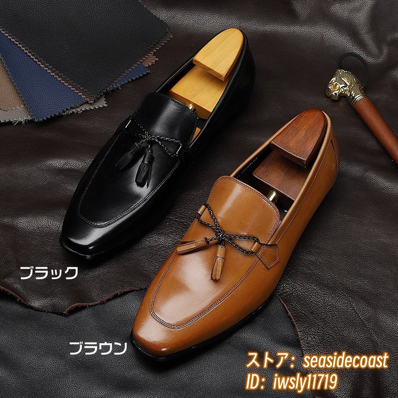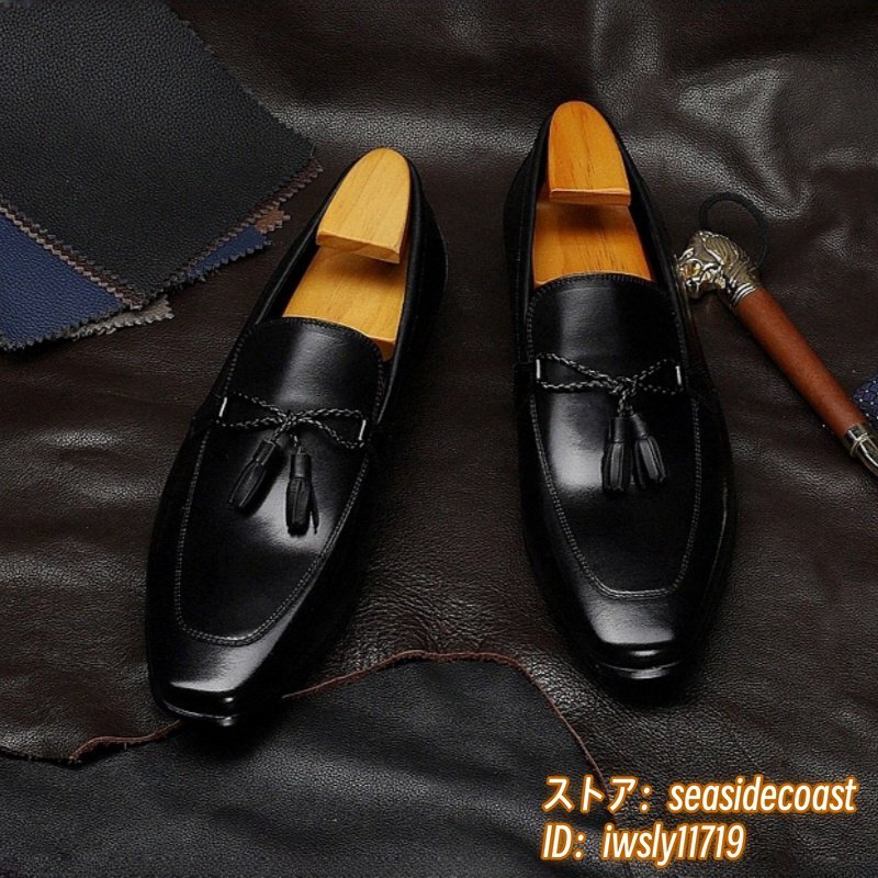 定価10万★メンズシューズ ビジネスシューズ 高級牛革 職人手作り 本革レザーシューズ 紳士靴 革靴 タッセルローファー ブラック 27.0cm