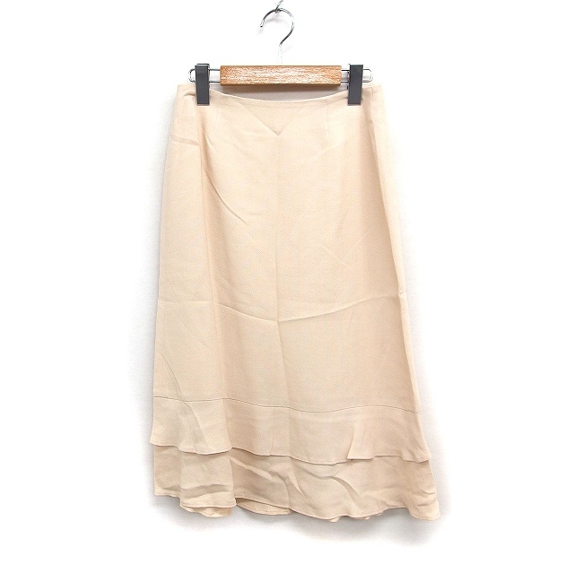 シビラ SYBILLA ヘムティアード スカート ミディ丈 無地 リネン混 M ライトベージュ /FT42 レディース
