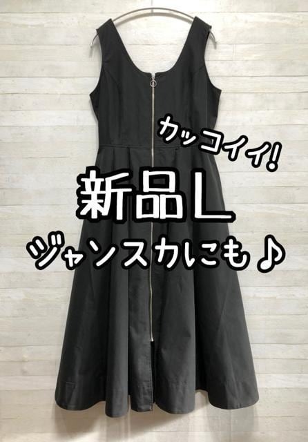 新品☆L♪黒♪かっこいいマキシワンピ♪ジャンスカにも♪ノースリ☆Q390