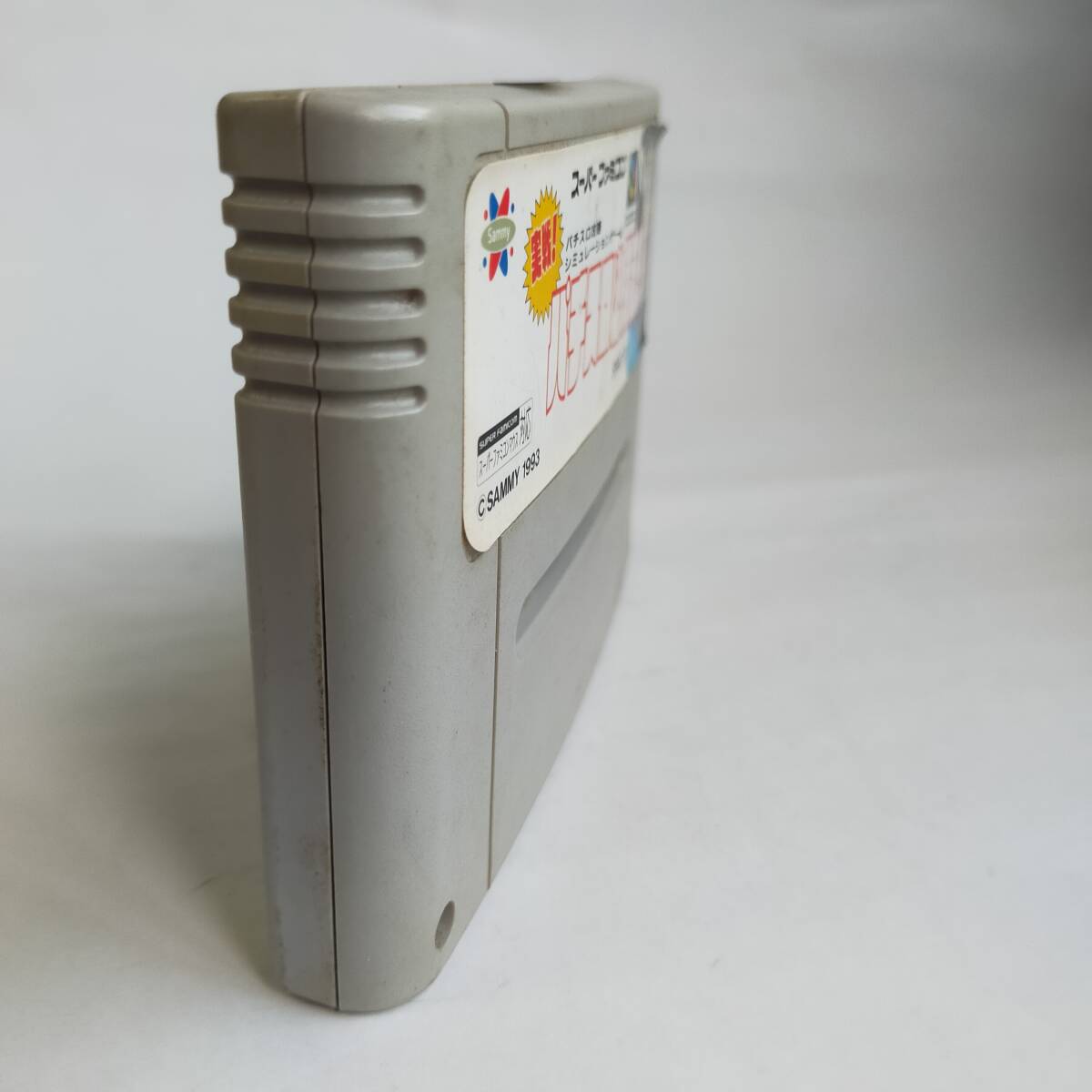 【日本語】 「実戦パチスロ必勝法」は、スーパーファミコンでパチスロの魅力を完全再現したゲームです。実際のパチスロ機の挙動をシミュレートし、リールの回転やボーナスのタイミングを見極める腕試しが楽しめます。リアルな音や演出が臨場感を高め、パチスロ愛好者にはたまらない内容です。初心者から上級者まで、スリル満点のプレイで勝利を目指しましょう!